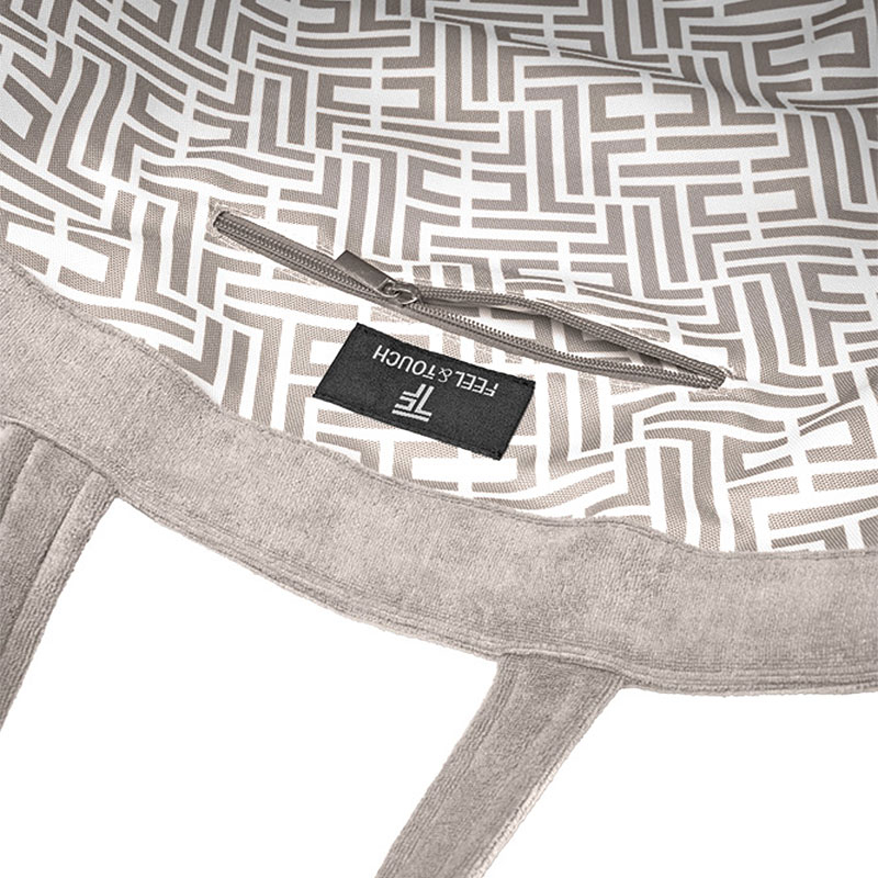 Πλύσιμο μόνο στο χέρι με κρύο ή χλιαρό νερό (μέγιστη θερμοκρασία 30°C). Χρησιμοποιείτε ήπιο απορρυπαντικό, χωρίς λευκαντικά ή χλωρίνη. Μην στύβετε ή τρίβετε έντονα την επιφάνεια για να αποφύγετε φθορές στην πετσετέ υφή. Μετά το πλύσιμο, στρώστε απαλά με πετσέτα για να στραγγίξει. Στεγνώνει φυσικά σε σκιερό και καλά αεριζόμενο χώρο. Αποφύγετε το άμεσο ηλιακό φως και το στεγνωτήριο. Απαγορεύεται το σιδέρωμα και το στεγνό καθάρισμα.