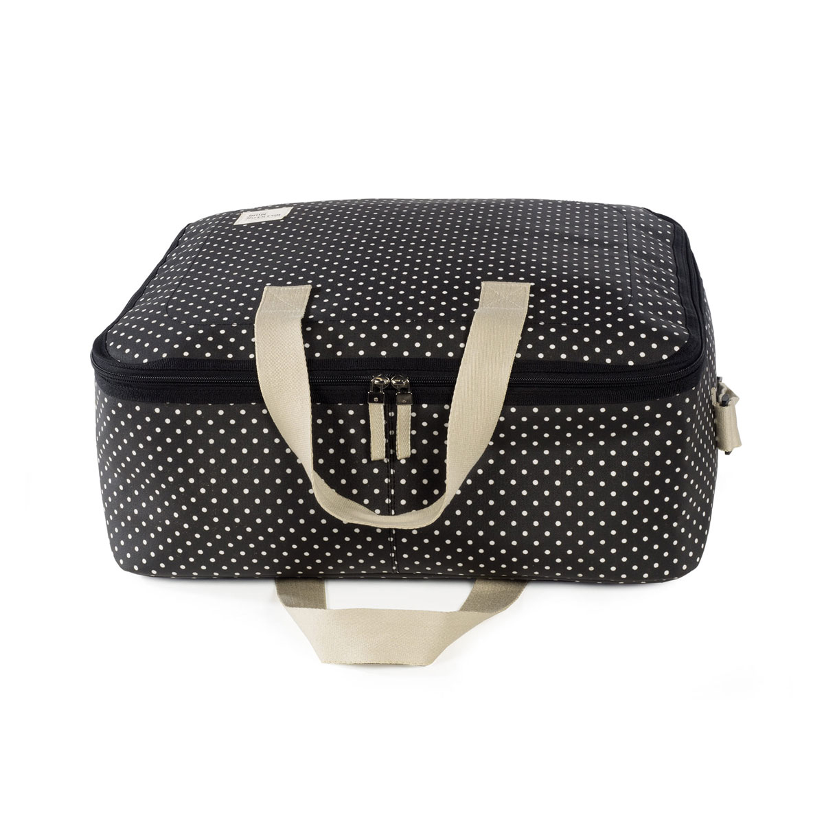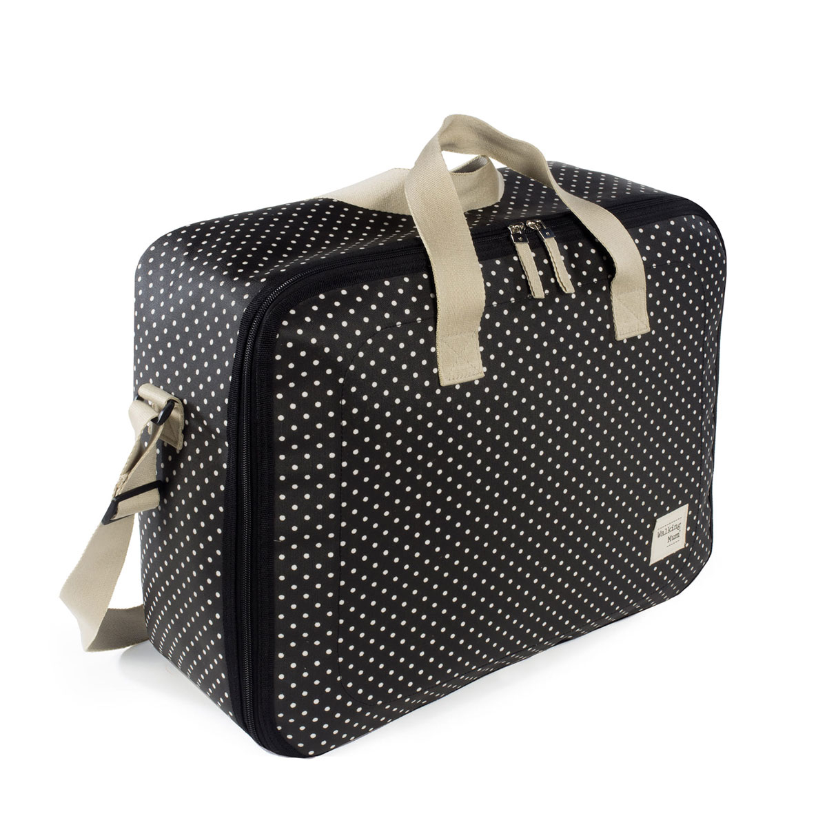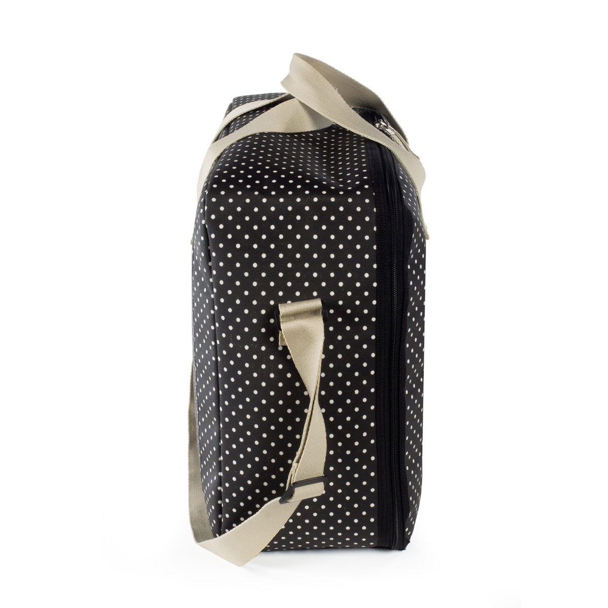 Τσάντα μαιευτηρίου από την εταιρεία Walking Mum σε μαύρο χρώμα με λευκές λεπτομέρειες και που σχέδιο. Η σύνθεσή της είναι από 100% πλαστικοποιημένο βαμβάκι που έχει υποστεί ειδική επεξεργασία ώστε να είναι αδιάβροχο. Η Walking Mum προστατεύει το μωρό σας χρησιμοποιώντας τα καλύτερα υφάσματα, απαλλαγμένα από ζαχαρώματα και ουσίες που είναι επιβλαβείς για την υγεία. Είναι ιδανική για να τοποθετήσετε τα ρούχα και τα αξεσουάρ του μωρού σας χωρίς να μπερδεύονται με τα δικά σας και να τα βρίσκετε αμέσως. Έχει μεγάλο χώρο αποθήκευσης με φερμουάρ διπλής κατεύθυνσης. Στο εσωτερικό της έχει ιμάντες που κλείνουν για να παραμένει το περιεχόμενο σταθερό και 3 επιπλέον εσωτερικές τσέπες ιδανικές για μικροαντικείμενα. Μπορείτε να την κρατήσετε από τα χερούλια ή να την κρεμάσετε στον ώμο από τον ιμάντα που περιλαμβάνεται στην συσκευασία.