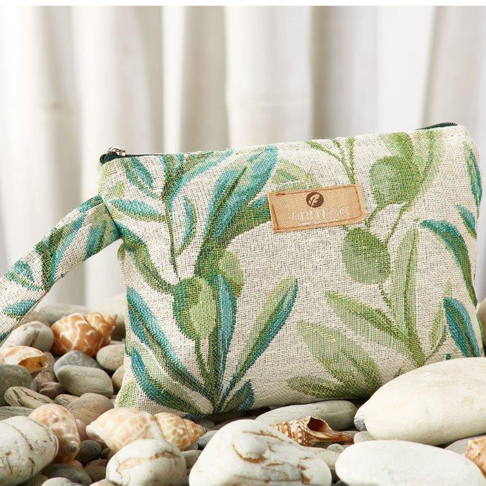 Τσαντάκι θαλάσσης από την εταιρεία Whitegg, σε εκρού χρώμα με πράσινες λεπτομέρειες και φλοράλ σχέδιο. Είναι κατασκευασμένο από 100% βαμβάκι. Κλείνει με φερμουάρ και διαθέτει λουράκι για να το έχετε μαζί σας παντού. Ιδανικό νεσεσέρ για να μεταφέρετε μικροαντικείμενα εύκολα και χωρίς ογκώδεις τσάντες.