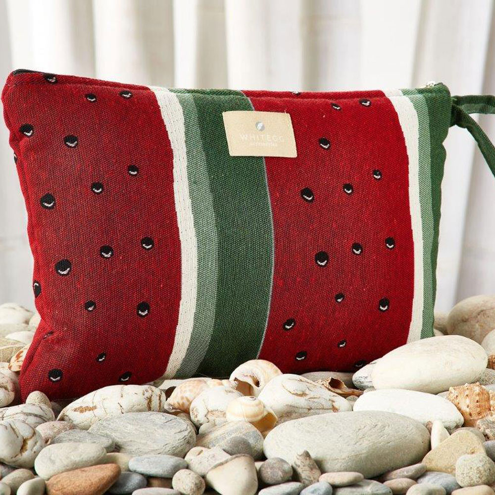 Τσαντάκι θαλάσσης από την εταιρεία Whitegg, σε κόκκινο χρώμα με πράσινες, λευκές-μαύρες λεπτομέρειες και μοντέρνο σχέδιο. Είναι κατασκευασμένο από 100% βαμβάκι. Κλείνει με φερμουάρ και διαθέτει λουράκι για να το έχετε μαζί σας παντού. Ιδανικό νεσεσέρ για να μεταφέρετε μικροαντικείμενα εύκολα και χωρίς ογκώδεις τσάντες.