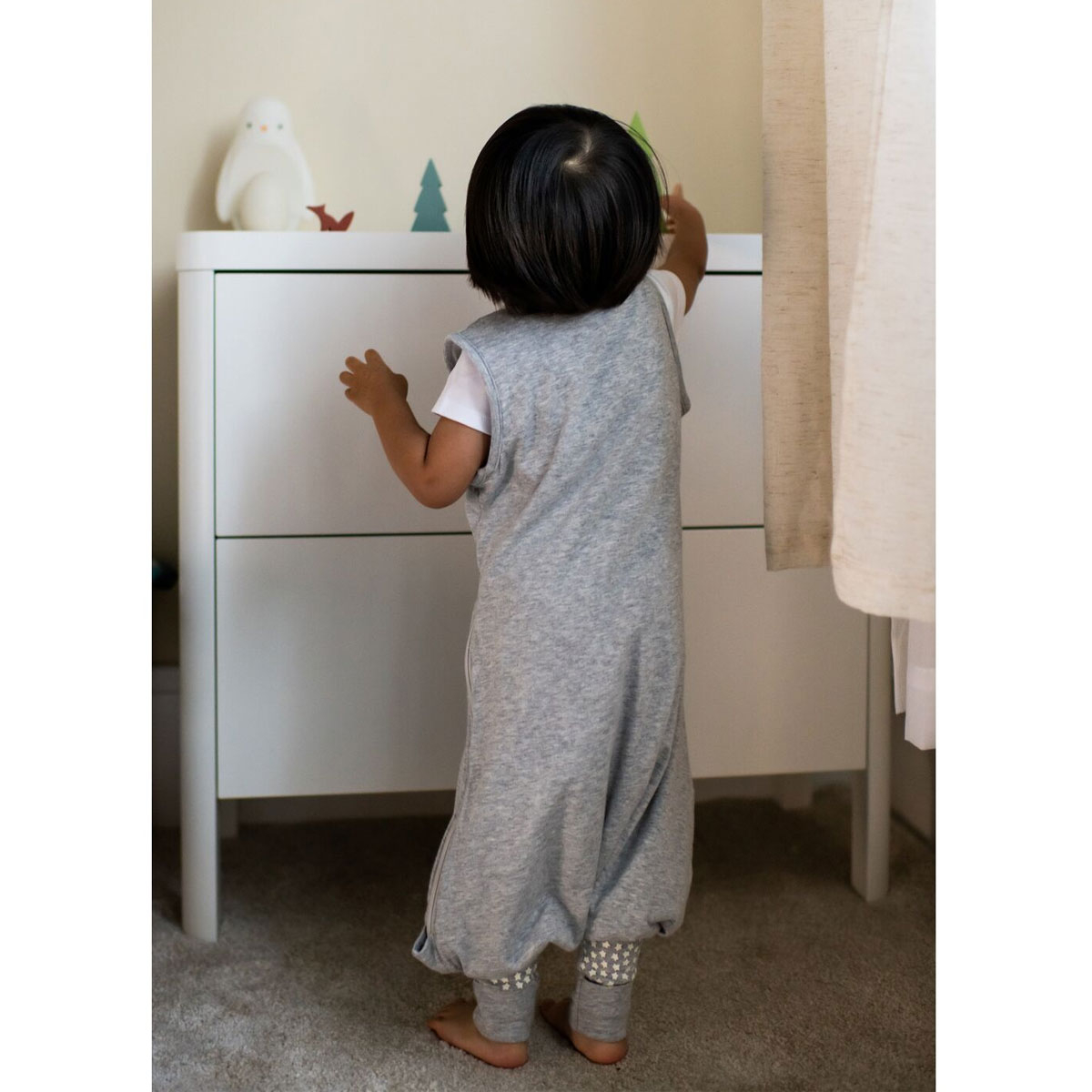 Οι βρεφικοί υπνόσακοι Gro έρχονται από την Αγγλία και είναι η κορυφαία επιλογή στο είδος τους. Βοηθούν να διατηρείται το μωρό στη σωστή θερμοκρασία, ανεξάρτητα από το πόσο στριφογυρίζει στον ύπνο. Έχουν ελεγχθεί και εγκριθεί για την ασφάλειά τους και τηρούν τα πιο πρόσφατα βρετανικά και ευρωπαϊκά πρότυπα ασφαλείας. Έχουν την υπογραφή και έγκριση του Οργανισμού Lullaby Trust (πιστοποιημένος φορέας που ερευνά τον ασφαλή ύπνο των βρεφών). Όλοι οι υπνόσακοι της Gro κατασκευάζονται χωρίς μανίκια, σύμφωνα με το Βρετανικό Πρότυπο για υπνόσακους, καθώς επιτρέπουν την εύκολη κυκλοφορία του αέρα και την αυτορρύθμιση της θερμοκρασίας των παιδιών. Τα μανίκια είναι ακατάλληλα για τον ασφαλή ύπνο των μωρών καθώς υπάρχει κίνδυνος υπερθέρμανσης. Δεν απαιτούνται άλλα σκεπάσματα που κάνουν άβολο τον ύπνο καθώς το μωρό ξεσκεπάζεται ή μπερδεύεται συνέχεια με τις κινήσεις κατά τη διάρκεια του ύπνου. O Βρεφικός υπνόσακος GroBag Steppee Sky Grey Marl είναι κατασκευασμένος από εξαιρετικής ποιότητας ύφασμα πλούσιο σε βαμβάκι, χωρίς φθαλικές ενώσεις, άνετο και απαλό για το δέρμα του μωρού. Χαρίζει στο παιδί την ελευθερία να περπατήσει, να πηδήξει και να παίξει διατηρώντας το ταυτόχρονα άνετο όλο το βράδυ. Τα χέρια και τα πόδια είναι ελεύθερα να κινούνται και είναι ιδανικός για τα δραστήρια παιδιά! Τα ποδαράκια του παιδιού μπορούν να είναι είτε ξυπόλητα είτε να καλυφθούν τραβώντας το ύφασμα. Έχουν αντιολισθητικά σημεία στο κάτω μέρος που τους δίνει την δυνατότητα να κινηθούν, να τεντωθούν και να τρέξουν. Η σχεδίασή του επιτρέπει στο μωρό να υιοθετήσει τη φυσική στάση ύπνου «βατραχάκι», η οποία είναι σημαντική για τη σωστή ανάπτυξη του ισχίου. Διαθέτει εύκολο άνοιγμα με διπλό φερμουάρ ιδανικό για τις νυχτερινές αλλαγές πάνας, που σημαίνει ότι μπορεί να ανοιχτεί μόνο στο κάτω μέρος χωρίς να διαταραχθεί ο ύπνος ή η θερμοκρασία του μωρού. Διαθέτει προστατευτικό στο φερμουάρ του λαιμού για να μην τραυματιστεί το βρεφικό δέρμα. Έχει θερμική απόδοση 2.5 Tog που τον καθιστά ιδανικό για δωμάτια με θερμοκρασία 16-20°C. Με τα περισσότερα βραβεία στον κόσμο, τις χιλιάδες διακρίσεις και τα πιστοποιητικά, η Gro Company προσφέρει στα μωρά παγκοσμίως ασφαλή ύπνο χωρίς να κρυώνουν ή να ζεσταίνονται και χωρίς το άγχος του ξεσκεπάσματος για τη μαμά. Ιδανικός υπνόσακος για μωρά.