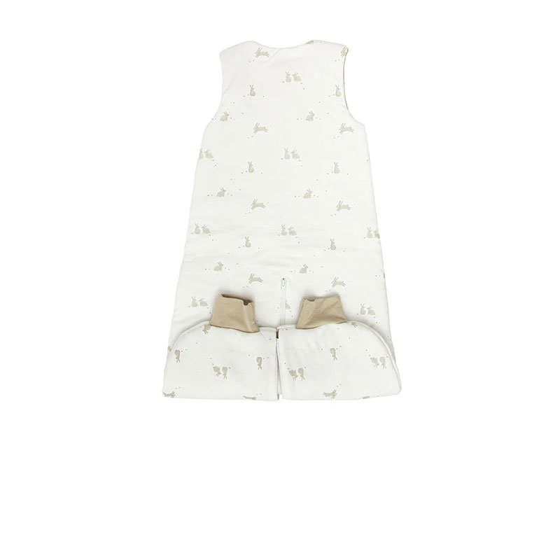 Βρεφικός υπνόσακος της εταιρείας Bimbidreams σε λευκό φόντο με μπεζ λεπτομέρειες και ζωάκια στο σχέδιο. Με την κίνηση ενός φερμουάρ, μετατρέπεται από σάκο σε βρεφικός υπνόσακος με πόδια. Ο δείκτης θερμότητας 2.5 tog είναι ιδανικός για τον χειμώνα και για θερμοκρασία δωματίου 16 – 19°C. Η εξωτερική επένδυσή του είναι από 50% βαμβάκι και 50% βισκόζη. Διαθέτει ραφές, που είναι όλες προς τα μέσα για επιπλέον άνεση, και φερμουάρ, ώστε να μην υπάρχουν μικρά εξαρτήματα. Τα φερμουάρ έχουν ασφάλεια υφάσματος στο κλείσιμο για αποφυγή γρατζουνιών ή ερεθισμών. Μπορεί να χρησιμοποιηθεί ως κλειστός βρεφικός υπνόσακος πιο μικρό μωρό ή με ανοιχτά ποδαράκια για να κοιμηθεί, να παίξει ή να σηκωθεί ένα παιδάκι. Τα πατουσάκια του μωρού μπορούν να καλυφθούν για να παραμένουν ζεστά απλώς με το γύρισμα του υφάσματος στον αστράγαλο. Όλα τα υφάσματα είναι με OEKO-TEX ή έχουν βαφτεί με χρώματα πιστοποιημένα με OEKO-TEX, που εγγυάται την απουσία τοξικών ουσιών για το σώμα και το περιβάλλον. Ιδανικός υπνόσακος για μωρά.