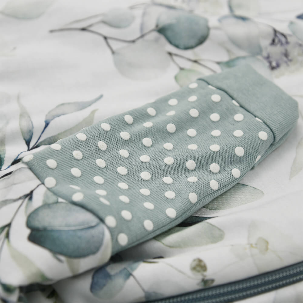 Βρεφικός υπνόσακος με φλοράλ σχέδιο σε βεραμάν αποχρώσεις της εταιρείας Bebe Stars. Κατασκευασμένος από 100% βαμβακερό ύφασμα που προσφέρει απαλότητα και άνεση, με πιστοποίηση Oeko-Tex. Ανοίγει με φερμουάρ που φτάνει χαμηλά στο πόδι. Διαθέτει αφαιρούμενα μανίκια και αναδιπλούμενα πατουσάκια με αντιολισθητική επένδυση. Έχει θερμική απόδοση 2.5 Tog που τον καθιστά ιδανικό για δωμάτια με θερμοκρασία 16-20 βαθμούς Κελσίου. Διατίθεται σε 3 μεγέθη: 12-18 Μηνών (70cm), 18-24 Μηνών (80cm), 24-36 Μηνών (90cm). Ιδανικός υπνόσακος για μωρά.