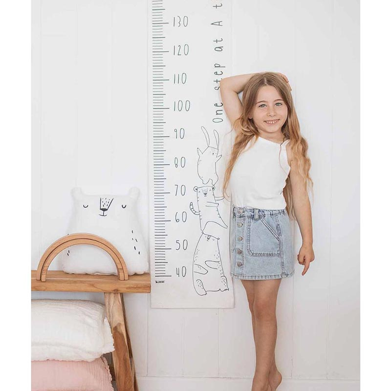 Διακοσμητικός υψομετρητής τοίχου σε λευκό χρώμα και μοντέρνο σχέδιο από την εταιρία Minene. Είναι υφασμάτινος, από 100% άριστης ποιότητας βαμβακερό καμβά. Έχει αναγραφόμενο ύψος από 0.4 έως 1.4 μέτρα. Χαρίστε παιχνιδιάρικη διάθεση στο δωμάτιο του παιδιού σας, ενώ παράλληλα θα βλέπετε πόσο γρήγορα μεγαλώνει.