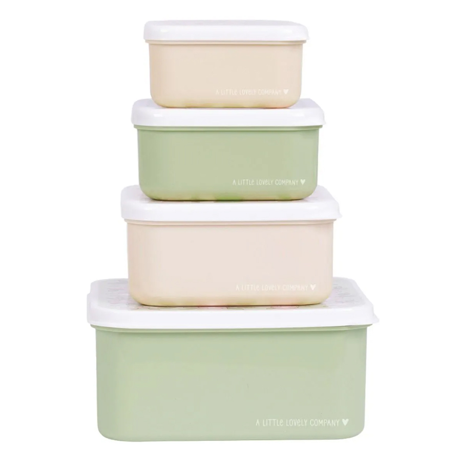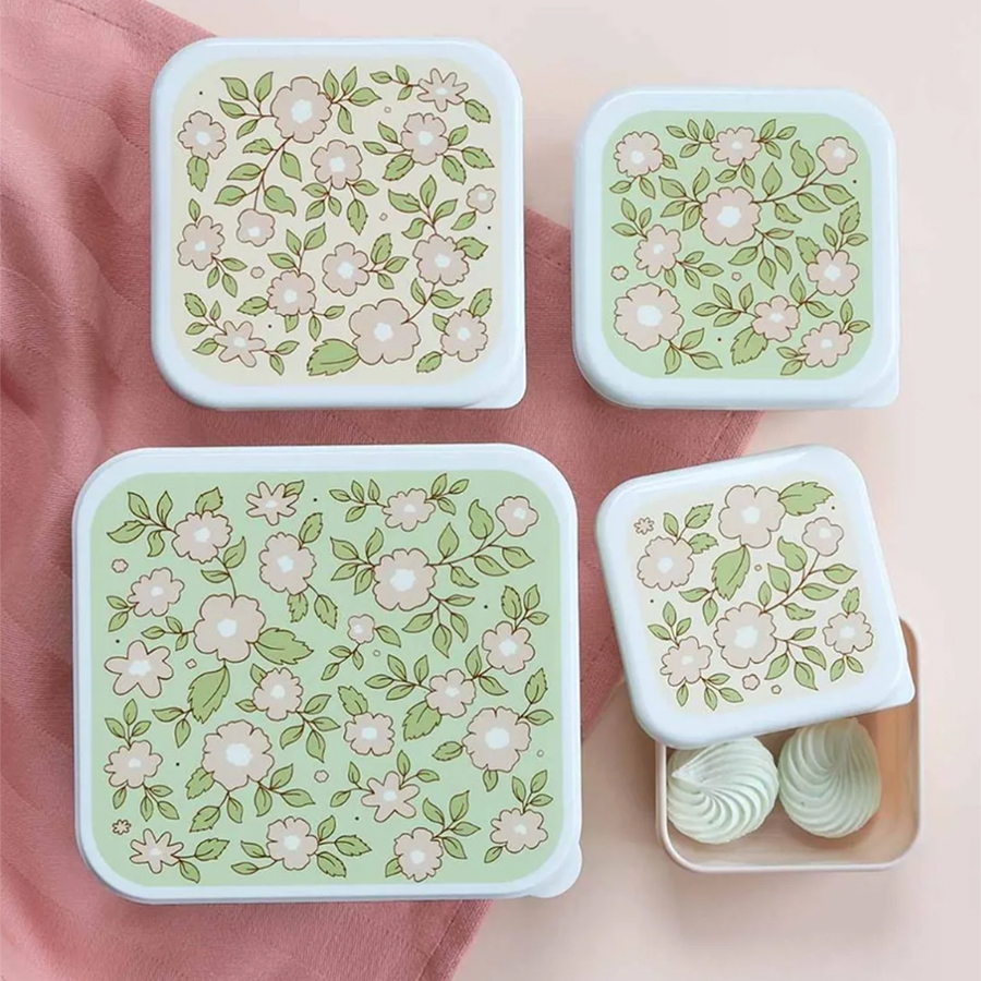 Φαγητοδοχεία της εταιρείας A Little Lovely Company σε τέσσερα διαφορετικά μεγέθη. Είναι ιδανικά για να μεταφέρετε ή να αποθηκεύσετε από το μεσημεριανό γεύμα έως τα φρούτα και τα σνακ του παιδιού. Έχουν φλοράλ σχέδιο και διαφορετικά χρώματα το καθένα. Είναι κατασκευασμένα από πλαστικό υλικό χωρίς BPA και φθαλικές ουσίες. Δεν είναι κατάλληλο για πλυντήριο πιάτων και φούρνο μικροκυμάτων.