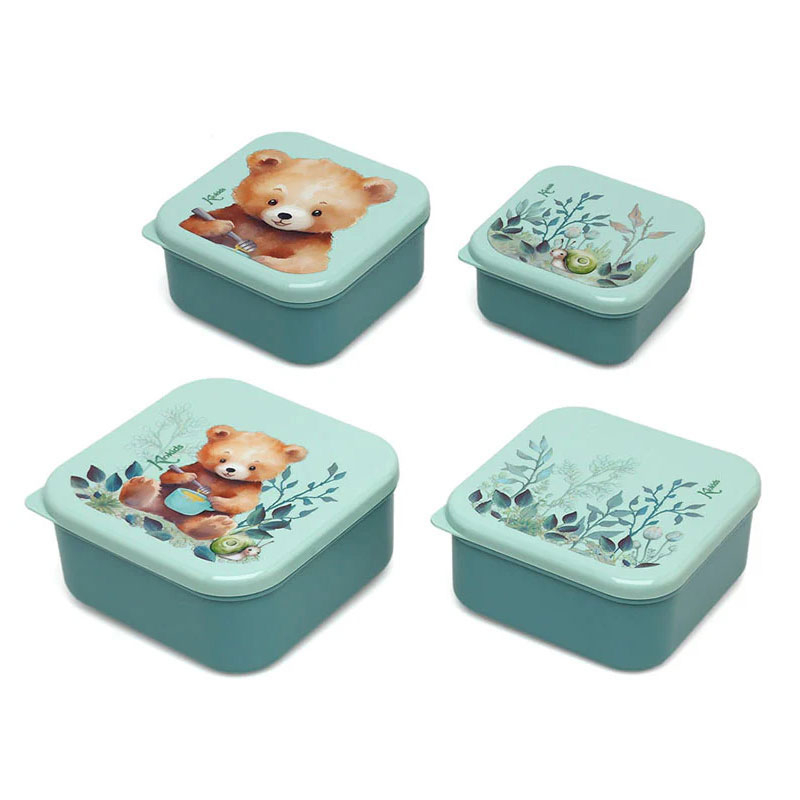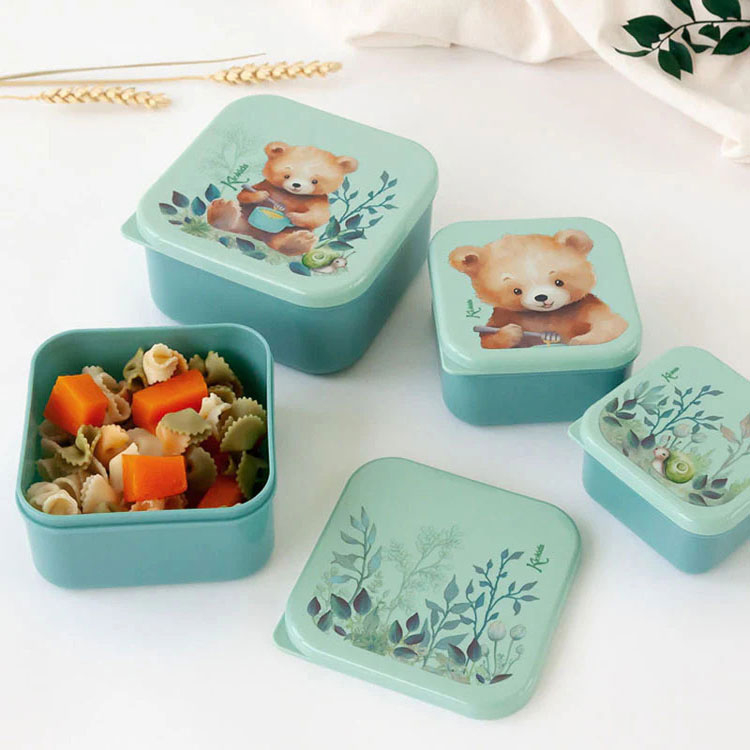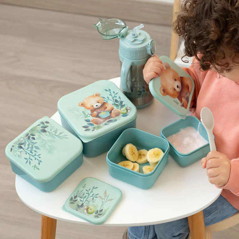 Φαγητοδοχεία σετ σε τυρκουάζ χρώμα και σχέδιο ζωάκια από την εταιρία Saro. Είναι κατασκευασμένα από ελαφρύ, ανθεκτικό πλαστικό χωρίς τοξικές ουσίες, BPA και φθαλικές ενώσεις. Πρακτικό σετ για να αποθηκεύσετε το φαγητάκι του μωρού σας για το σχολείο.