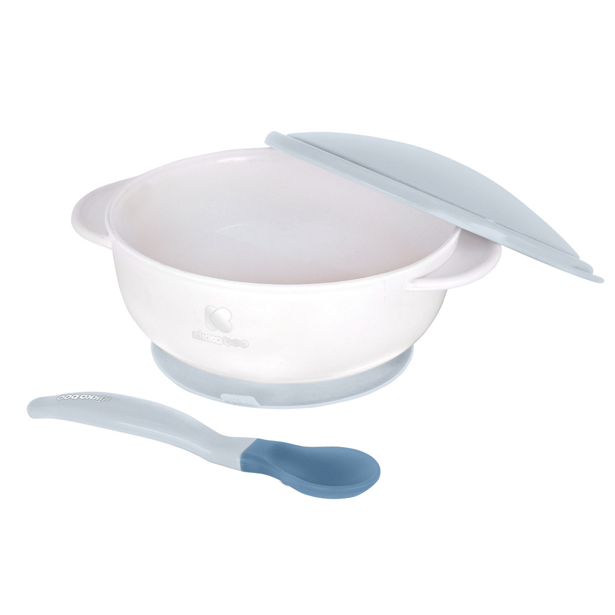 Φαγητοδοχείο με καπάκι και κουτάλι φαγητού από την εταιρία Kikka Boo σε γαλάζιες αποχρώσεις. Είναι κατασκευασμένα από πλαστικό υλικό χωρίς BPA. Το καπάκι είναι ιδανικό για να κλείνει το φαγητοδοχείο με ασφάλεια ενώ διαθέτει ειδικά διαμορφωμένη θέση για να στέκεται το κουτάλι. Στο κάτω μέρος διαθέτει βεντούζα για να στέκεται με ασφάλεια οπουδήποτε, χωρίς να ανησυχείτε για ζημιές. Το κουτάλι έχει αισθητήρα θερμότητας που υποδεικνύει αν το φαγητό είναι πολύ ζεστό. Βυθίστε απλώς το άκρο του κουταλιού στο φαγητό του μωρού και δείτε αν το χρώμα του αλλάξει. Αν αλλάξει, τότε το φαγητό είναι πολύ ζεστό. Περιμένετε λίγο να κρυώσει και επαναλάβετε. Αν το άκρο δεν αλλάξει χρώμα, έχει την κατάλληλη θερμοκρασία για να ταΐσετε το μωρό σας. Κατάλληλο για μωρά 4+ μηνών. Χωρητικότητα 250ml.