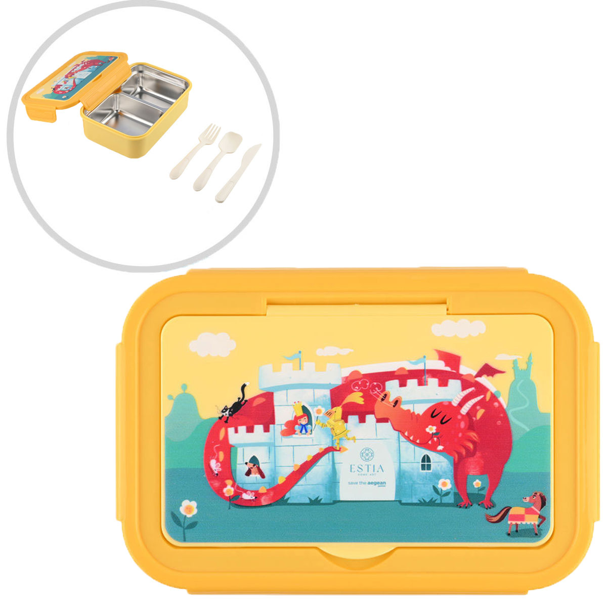 Φαγητοδοχείο Με Χωρίσματα & Κουτάλι & Πιρούνι & Μαχαίρι (Σετ) Estia Save The Aegean Fortress Dragon 01-33699
