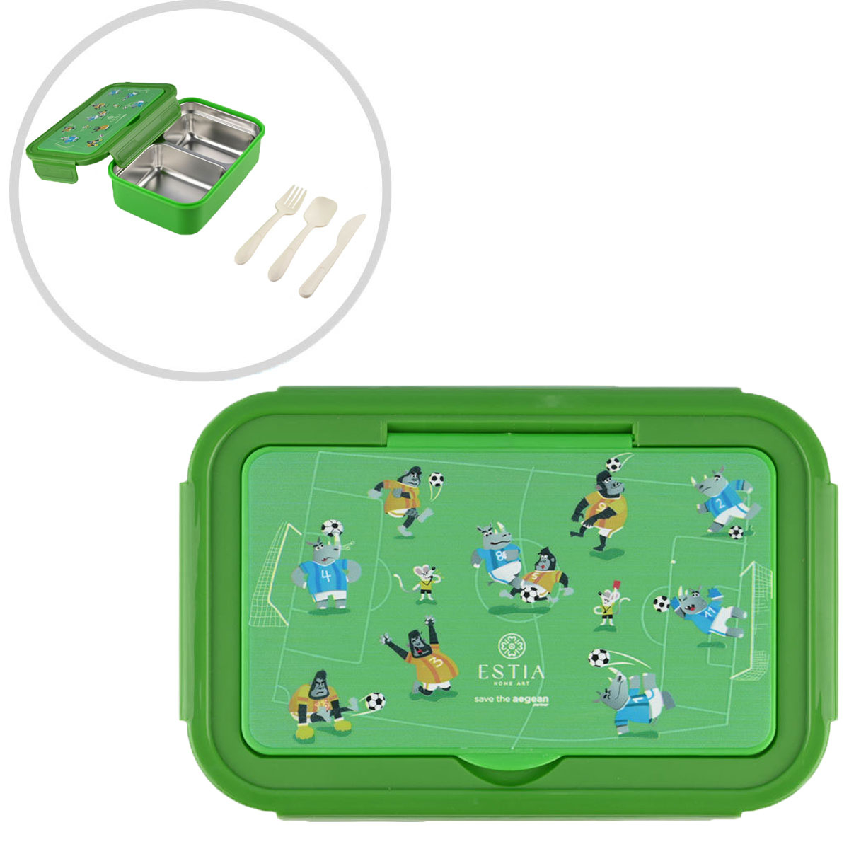 Φαγητοδοχείο Με Χωρίσματα & Κουτάλι & Πιρούνι & Μαχαίρι (Σετ) Estia Save The Aegean Jungle Kick 01-33705