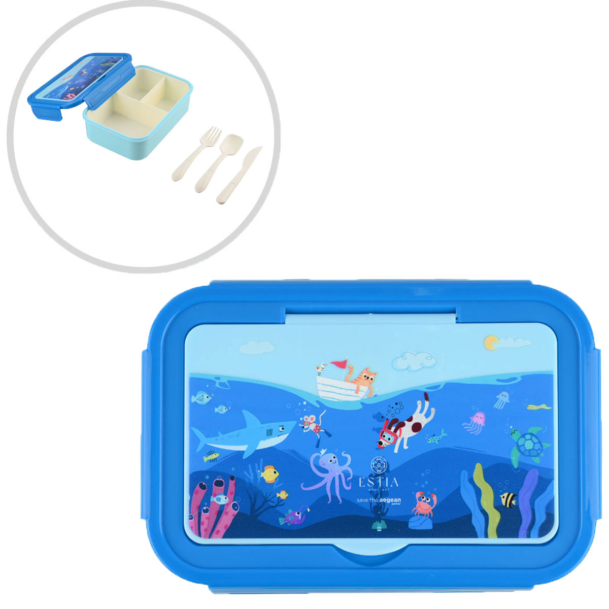 Φαγητοδοχείο Με Χωρίσματα & Κουτάλι & Πιρούνι & Μαχαίρι (Σετ) Estia Save The Aegean Ocean Play 01-33583