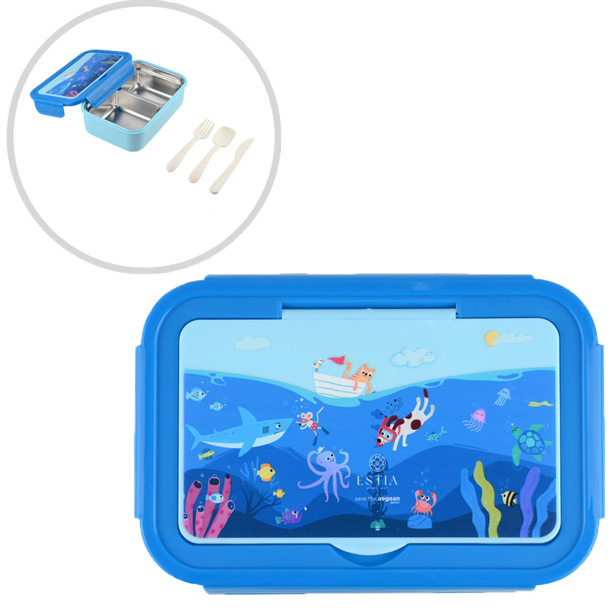 Φαγητοδοχείο Με Χωρίσματα & Κουτάλι & Πιρούνι & Μαχαίρι (Σετ) Estia Save The Aegean Ocean Play 01-33651