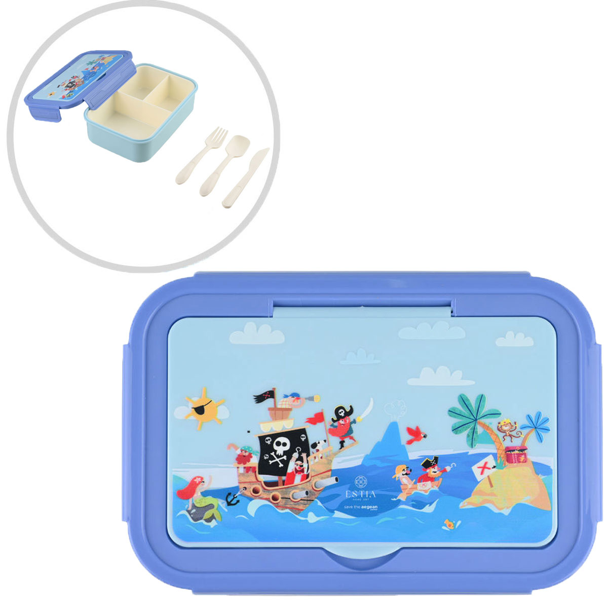 Φαγητοδοχείο Με Χωρίσματα & Κουτάλι & Πιρούνι & Μαχαίρι (Σετ) Estia Save The Aegean Treasure Quest 01-33613