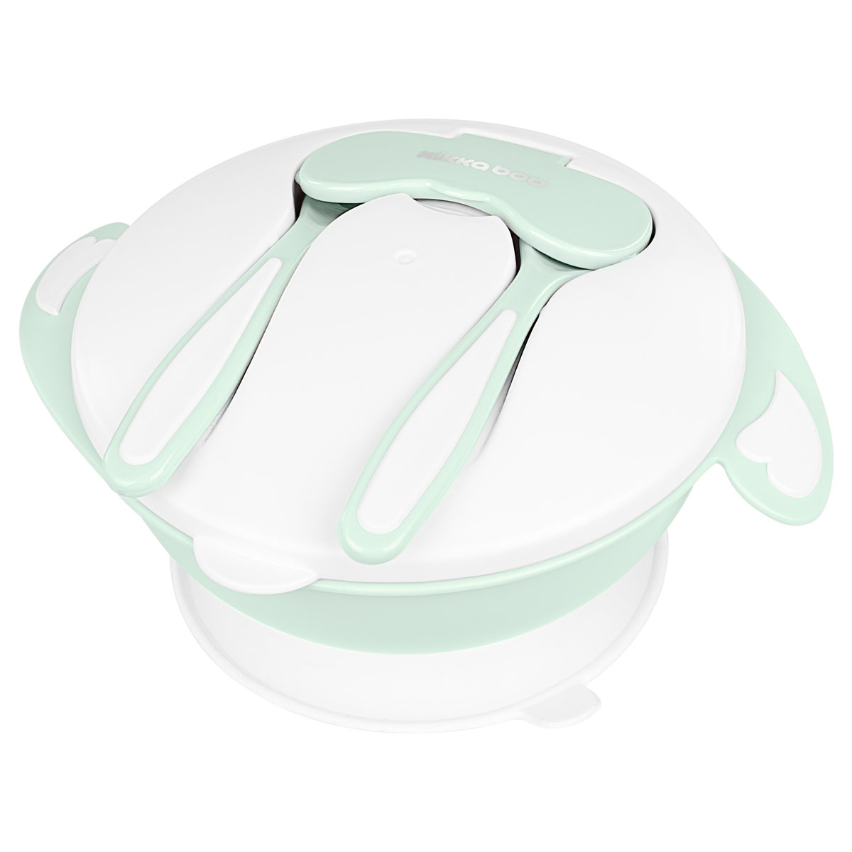 Φαγητοδοχείο χωρητικότητας 700ml σε πράσινο-λευκό χρώμα από την εταιρεία Kikka Boo. Είναι κατασκευασμένο από πλαστικό υλικό ασφαλές υλικό για τρόφιμα χωρίς BPA, μόλυβδο και φθαλικά. Διαθέτει 1 κουτάλι, 1 πιρούνι και 1 αφαιρούμενο μπολ. Το καπάκι του είναι αεροστεγές εμποδίζοντας τα υγρά να χυθούν. Με 3 χωρίσματα για να μην ανακατεύονται τα τρόφιμα. Δεν είναι κατάλληλο για φούρνο μικροκυμάτων. Για ηλικίες 4+ μηνών.