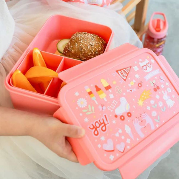 Φαγητοδοχείο τύπου bento box από την εταιρία A Little Lovely Company. Έχει κοραλί χρώμα με μοντέρνο σχέδιο. Είναι κατασκευασμένο από πολυπροπυλένιο, χωρίς BPA και φθαλικές ενώσεις. Διαθέτει αφαιρούμενο συρόμενο διαχωριστικό για να τοποθετείτε τα φαγητά του μικρού σας χωρίς να ανακατεύονται μεταξύ τους. Με αεροστεγές κλείσιμο για να μεταφέρετε ή να αποθηκεύσετε από το μεσημεριανό γεύμα έως τα φρούτα και τα σνακ του παιδιού χωρίς διαρροές. Συνδυάστε το με τα υπόλοιπα είδη του ίδιου σχεδίου για ένα ολοκληρωμένο αποτέλεσμα. Έχει χωρητικότητα 1.2 λίτρα. Διαστάσεις εσωτερικού δίσκου 12.5εκ.Μx9εκ.Πx5.5εκ.Υ.