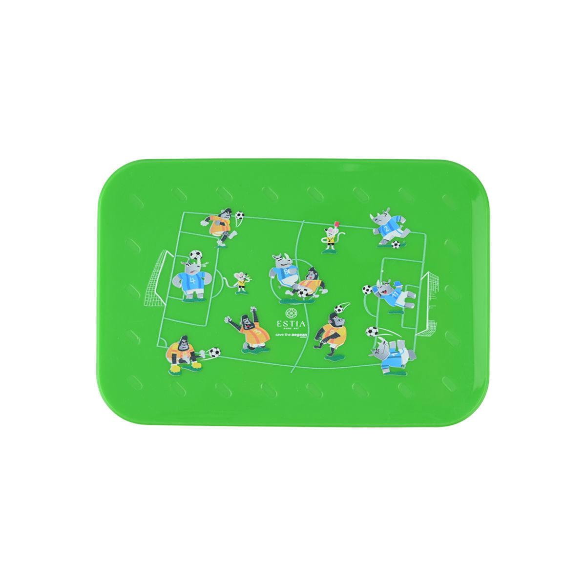 Φαγητοδοχείο τύπου bento box 900ml σε πράσινο χρώμα, με λαχανί λεπτομέρειες και σχέδιο ζωάκια από την εταιρεία εstia. Είναι μέρος της συλλογής "Save The Aegean". Η εταιρεία εstia συνεισφέρει στον οργανισμό "Save The Aegean" με 1% επί των πωλήσεων, για καθαρότερες θάλασσες και ένα καλύτερο αύριο. Είναι κατασκευασμένο από πλαστικό υλικό. Διαθέτει αποσπώμενη θήκη για τον εύκολο διαχωρισμό των τροφών, μπορεί να χρησιμοποιηθεί δίχως την αποσπώμενη θήκη. Χωράει το μεσημεριανό, τα φρούτα ή το σνακ του παιδιού σας και είναι ιδανικό για το σχολείο ή την βόλτα.