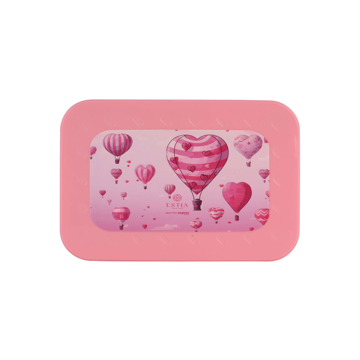 Φαγητοδοχείο τύπου bento box 900ml σε ροζ χρώμα, με κόκκινες λεπτομέρειες και σχέδιο καρδιές από την εταιρεία εstia. Είναι μέρος της συλλογής "Save The Aegean". Η εταιρεία εstia συνεισφέρει στον οργανισμό "Save The Aegean" με 1% επί των πωλήσεων, για καθαρότερες θάλασσες και ένα καλύτερο αύριο. Είναι κατασκευασμένο από πλαστικό υλικό. Διαθέτει αποσπώμενη θήκη για τον εύκολο διαχωρισμό των τροφών, μπορεί να χρησιμοποιηθεί δίχως την αποσπώμενη θήκη. Χωράει το μεσημεριανό, τα φρούτα ή το σνακ του παιδιού σας και είναι ιδανικό για το σχολείο ή την βόλτα.