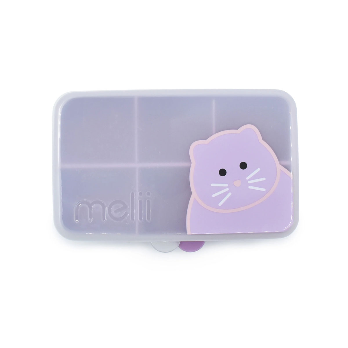 Φαγητοδοχείο τύπου bento box με χωρίσματα σε μωβ χρώμα και σχέδιο γατούλα στο καπάκι από την εταιρεία Melii. Είναι κατασκευασμένο από πλαστικό υλικό χωρίς BPA. Διαθέτει 6 ξεχωριστές θήκες χωρητικότητας 114ml το καθένα. Ιδανικό για να μεταφέρεται τα γεύματα ή τα σνακ του παιδιού σας ενώ το καπάκι κλείνει αεροστεγώς διατηρούν τα σνακ φρέσκα και άθικτα, ακόμη και κατά τις βόλτες. Ειδικά σχεδιασμένο για να ανοιγοκλείνει εύκολα από μικρά χεράκια.