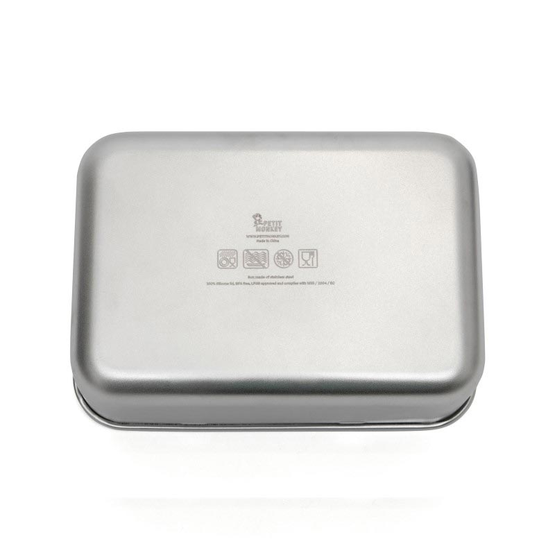 Φαγητοδοχείο σε σομόν χρώμα από την εταιρία Petit Monkey. Το δοχείο είναι κατασκευασμένο από υψηλής ποιότητας ατσάλι 304 και το καπάκι είναι υψηλής ποιότητας food grade σιλικόνη κατάλληλη για τρόφιμα (LFGB). Επιπλέον έχει υποστεί ειδική επεξεργασία για να έχει ματ υφή, ενώ στο κάτω μέρος είναι χαραγμένα τα χαρακτηριστικά του. Ζεσταίνει το φαγητό σε συμβατικό φούρνο σε χαμηλή θερμοκρασία και δεν μπαίνει σε φούρνο μικροκυμάτων. Ιδανικό για να κρατάει τις γεύσεις αναλλοίωτες και το φαγητό φρέσκο.
