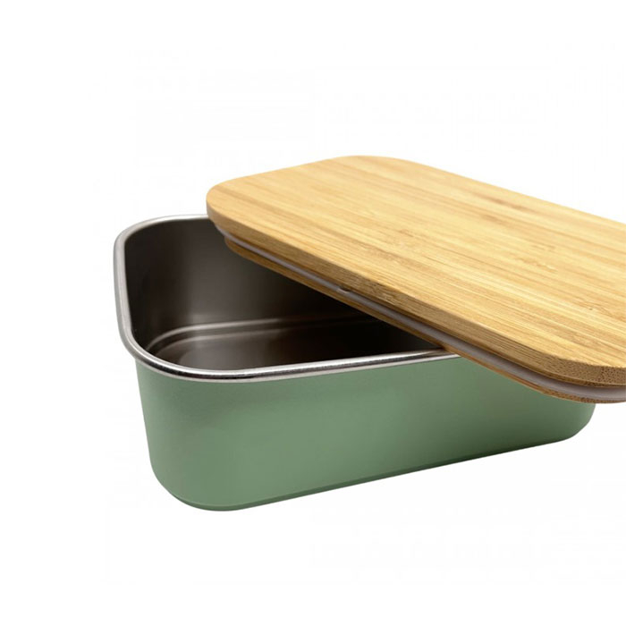 Φαγητοδοχείο από την εταιρεία Smikkels σε πράσινο χρώμα. Είναι κατασκευασμένο από ανοξείδωτο ατσάλι. Το υλικό αυτό δεν απορροφά μυρωδιές και λεκέδες χρώματος, όπως λαδιού από το φαγητό. Έχει καπάκι κατασκευασμένο από μπαμπού. Το καπάκι στις άκρες του έχει μια λωρίδα σιλικόνης, ώστε να αποφεύγονται οι διαρροές από το φαγητό σας. Διαθέτει ένα ελαστικό σιλικόνης, για ακόμη μεγαλύτερη ασφάλεια. Χωράει το μεσημεριανό φαγητό, τα φρούτα ή το σνακ του παιδιού σας και είναι ιδανικό για το σχολείο ή την βόλτα. Έχει χωρητικότητα 900ml. Συνδυάστε το με το διαχωριστικό σιλικόνης της εταιρείας, για μεγαλύτερη οργάνωση και ευκολία στο σερβίρισμα.