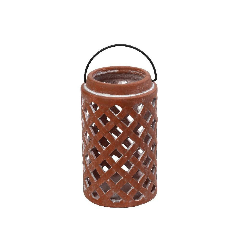 Φανάρι από την εταιρεία Espiel στην απόχρωση της τερακότας με μοντέρνο σχεδιασμό. Είναι κατασκευασμένο από κεραμικό υλικό. Διαθέτει λαβή για να το μεταφέρετε ή να το κρεμάσετε. Τοποθετήστε το σε όποια γωνία του σπιτιού σας επιθυμείτε για να φωτίσετε τον χώρο σας ή ακόμη και στον εξωτερικό χώρο.
