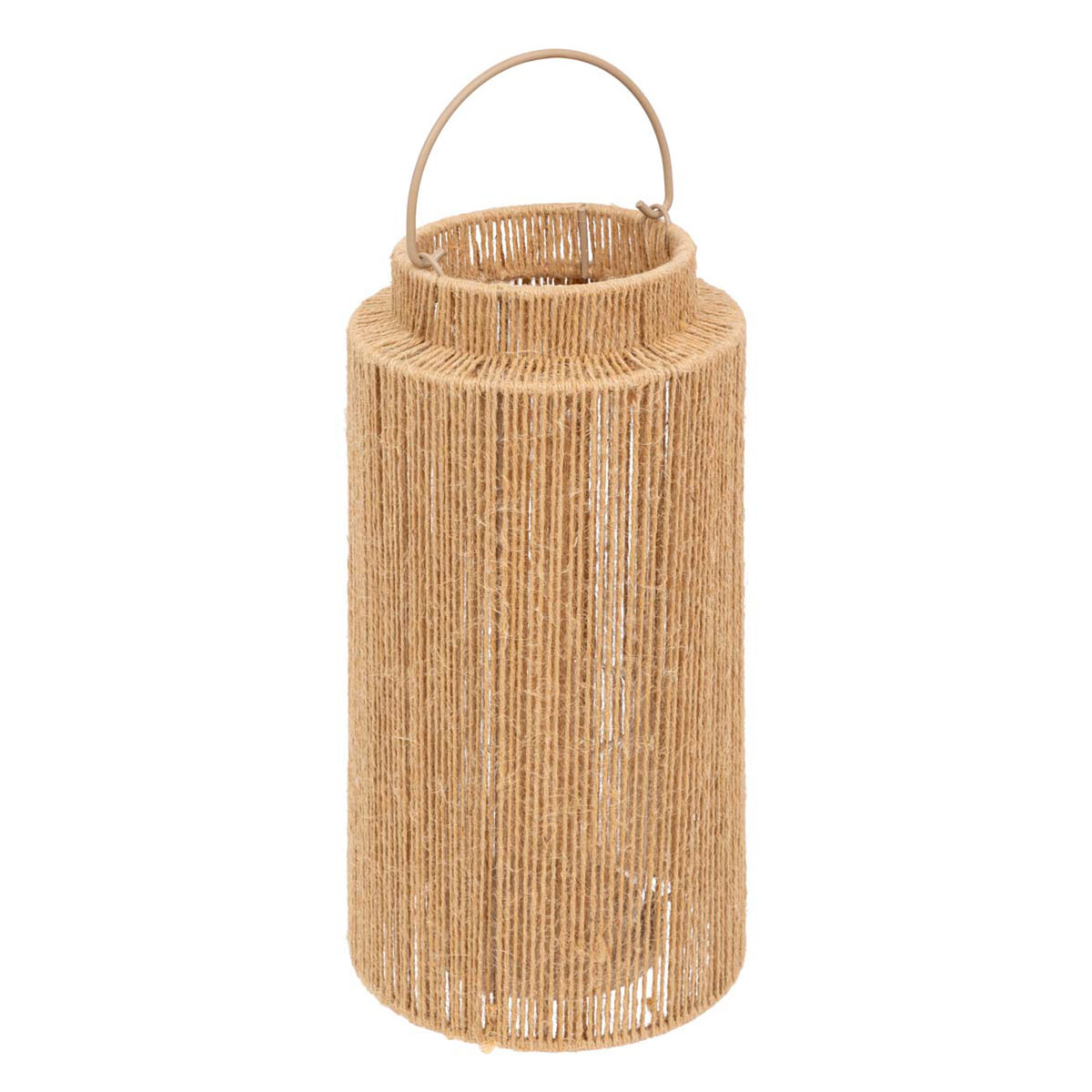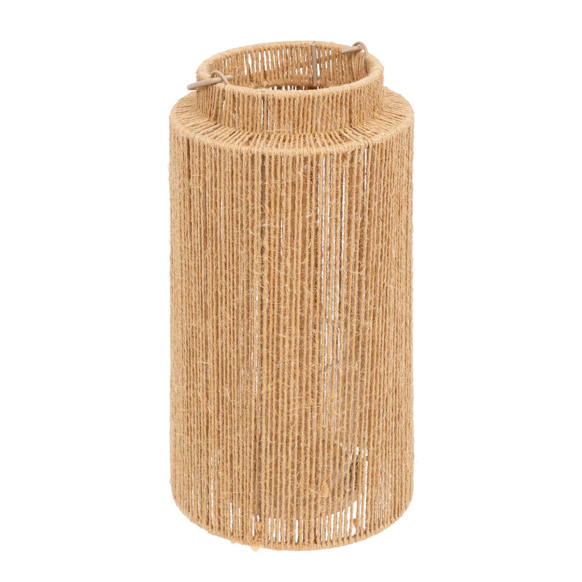Ψάθινο φανάρι με διάτρητο σχέδιο σε μπεζ χρώμα. Μπορεί να κρεμαστεί εφόσον επιθυμείτε με τη λαβή που διαθέτει στο επάνω μέρος. Θα χαρίσει απαλό και ρομαντικό φωτισμό σε όποιο χώρο του σπιτιού επιθυμείτε.