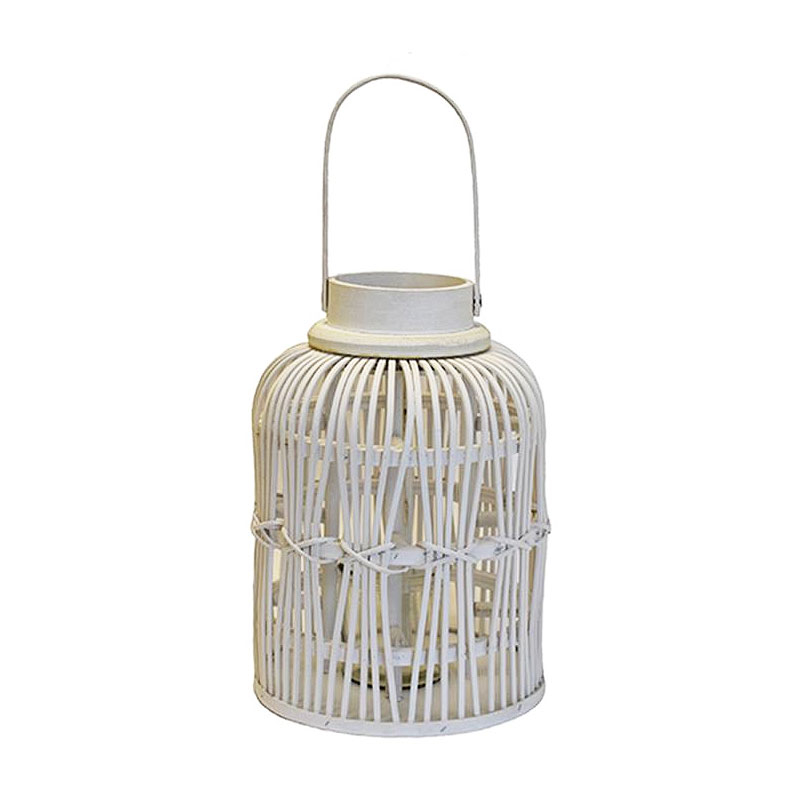 Φανάρι που θα χαρίσει απαλό φωτισμό σε όποιο χώρο επιθυμείτε, από την εταιρία Mod. Είναι κατασκευασμένο από ξύλο bamboo σε λευκό χρώμα με πλεκτό σχέδιο. Εσωτερικά διαθέτει γυάλα για να τοποθετήσετε το κερί. Μπορεί να κρεμαστεί εφόσον επιθυμείτε από το χερούλι στο επάνω μέρος. Ύψος με λαβή: 39εκ. Ιδανικό φανάρι για να το τοποθετήστε σε κάποια γωνία του σπιτιού σας και να δώσετε στυλ.