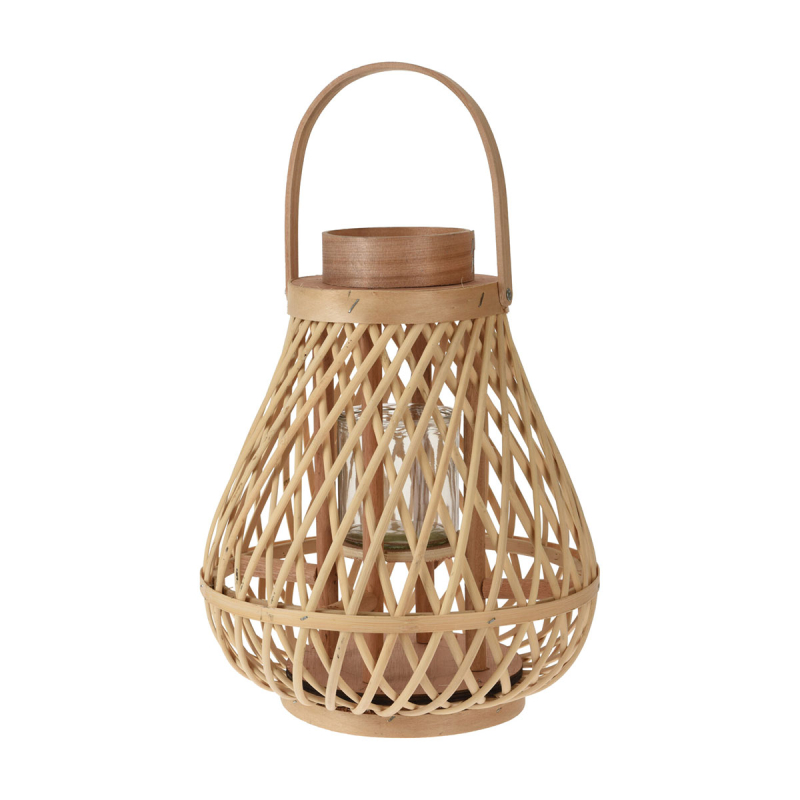 Φανάρι που θα χαρίσει απαλό φωτισμό σε όποιο εσωτερικό ή εξωτερικό χώρο επιθυμείτε. Είναι κατασκευασμένο από rattan σε φυσικό χρώμα και έχει γυάλα για να τοποθετήσετε κερί. Διαθέτει χερούλι στο επάνω μέρος για να μπορεί να κρεμαστεί εφόσον επιθυμείτε.