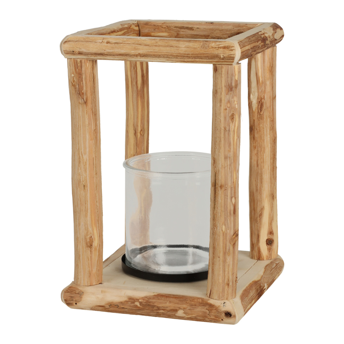 Φανάρι που θα χαρίσει απαλό φωτισμό σε όποιο εσωτερικό ή εξωτερικό χώρο επιθυμείτε. Είναι κατασκευασμένο από ξύλο σε φυσικό χρώμα. Έχει γυάλα μεγέθους Φ10x10 για να τοποθετήσετε το κερί.
