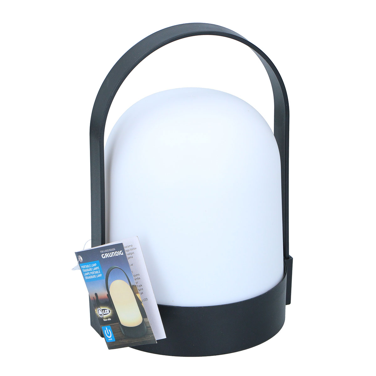 Διακοσμητικό φανάρι με λάμπα Led σε μοντέρνο στυλ από την εταιρεία Grundig. Είναι κατασκευασμένο από πλαστικό υλικό σε λευκό χρώμα με μαύρες λεπτομέρειες. Είναι ιδανικό για να φωτίσετε όποιο χώρο του σπιτιού σας επιθυμείτε ή να διακοσμήσετε τον κήπο και τους εξωτερικούς χώρους του σπιτιού ή του εξοχικού σας. Επίσης μπορείτε να το χρησιμοποιήσετε σαν φανάρι για το κάμπινγκ. Διαθέτει λαβή για εύκολη μεταφορά ή για να το κρεμάτε και έχει 2 επιλογές έντασης θερμού λευκού φωτισμού. Λειτουργεί με 3 μπαταρίες AA/LR6 (δεν περιλαμβάνονται).
