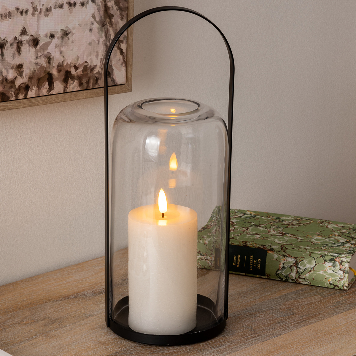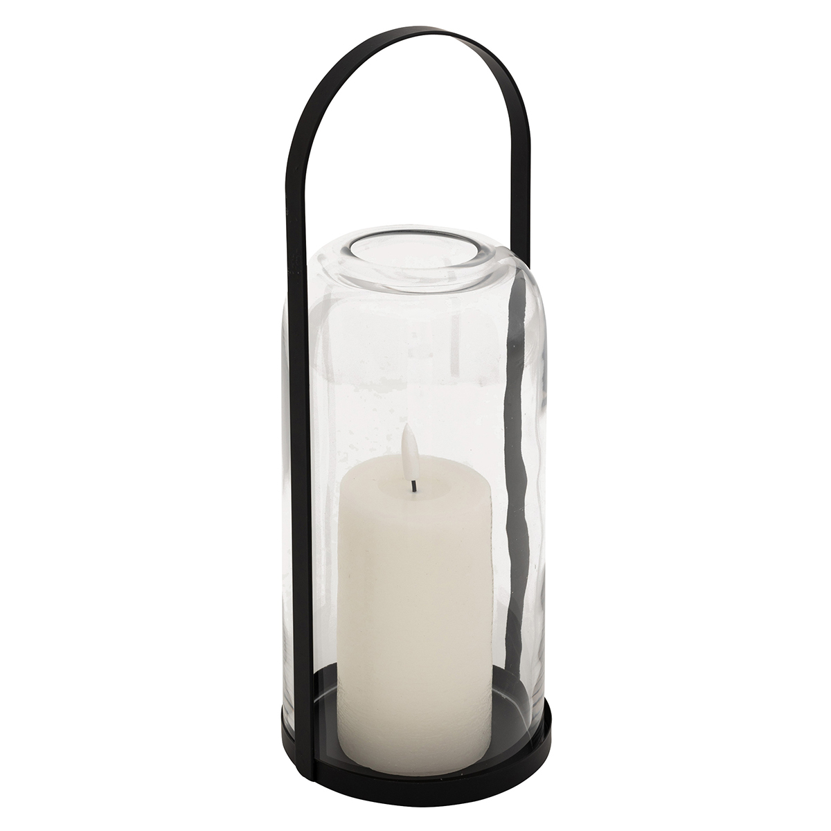Φανάρι με μοντέρνο σχεδιασμό που θα προσθέσει στυλ και ομορφιά στον χώρο σας. Είναι κατασκευασμένο από διάφανο γυαλί με μαύρες μεταλλικές λεπτομέρειες. Εσωτερικά έχει κερί led σε λευκό χρώμα. Διαθέτει λαβή για να το κρεμάσετε ή να το μεταφέρετε. Τοποθετήστε το στην τραπεζαρία, το σαλόνι, την κρεβατοκάμαρα ή στην βεράντα για να αναβαθμίσετε την αισθητική των χώρων σας.