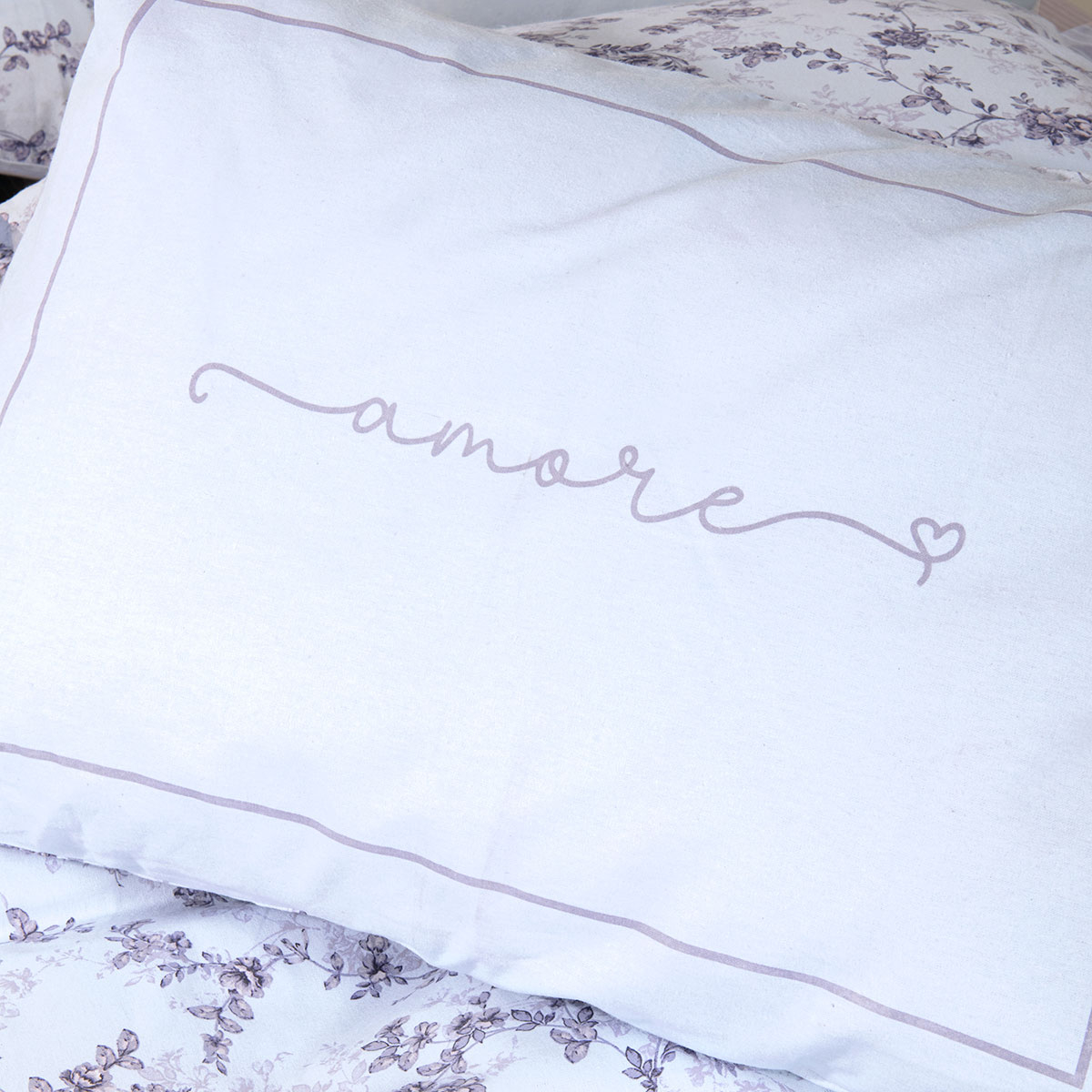 Σετ φανελένια μονή παπλωματοθήκη σε λευκό φόντο, με λιλά λεπτομέρειες και φλοράλ σχέδιο από την εταιρεία Nima. Το ύφασμα είναι 100% βαμβακερή φανέλα που τα καθιστά ιδανικά για τους χειμωνιάτικους μήνες, καθώς προσφέρουν ζεστασιά και απαλότητα. Στο κάτω μέρος κλείνει με φερμουάρ. Η παπλωματοθήκη και η μαξιλαροθήκη φάκελος είναι διπλής όψης, με τη μία μεριά να έχει το σχέδιο του πανωσέντονου και την άλλη του κατωσέντονου. **Το σχέδιο στις μαξιλαροθήκες ενδέχεται να διαφέρει από αυτό της φωτογραφίας καθώς η εταιρεία παράγει μαξιλαροθήκες από όλο το σχέδιο του υφάσματος και τις συσκευάζει με τυχαία σειρά.** Υπάρχει επιλογή τύπου κατωσέντονου με ή χωρίς λάστιχο. Συνδυάστε την με τα υπόλοιπα είδη του ίδιου σχεδίου για ένα ολοκληρωμένο αποτέλεσμα.