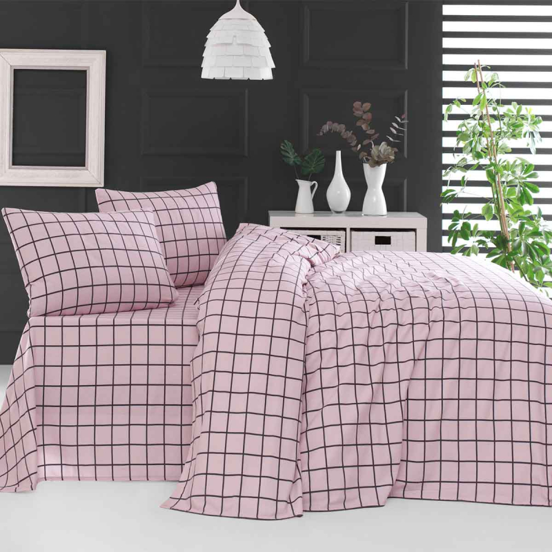 | Rythmos HomeΦανελένια Σεντόνια Υπέρδιπλα (Σετ) Rythmos Squares Pink