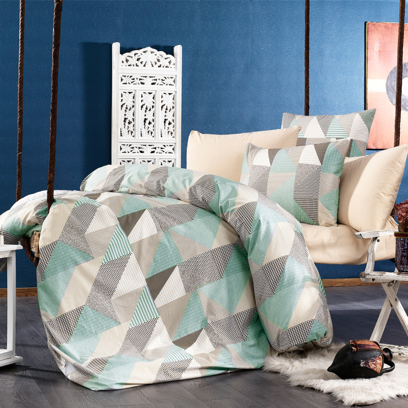 | DimcolΦανελένιο Σεντόνι Υπέρδιπλο Επίπεδο + Μαξιλαροθήκες (Σετ) Dimcol Geometrical 330 Green-Beige