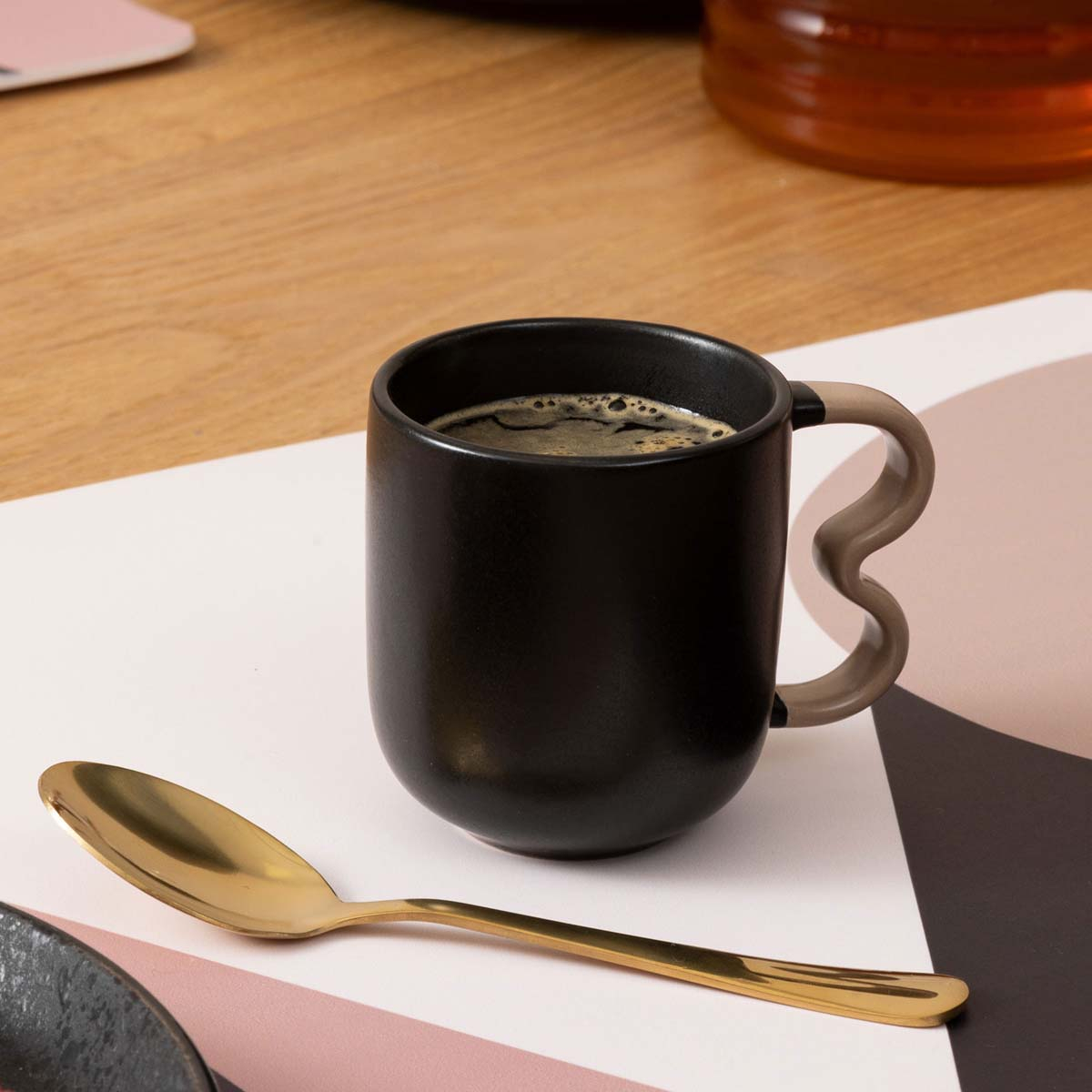 Φλυτζάνι εσπρέσο 120ml με μοντέρνο σχεδιασμό. Είναι κατασκευασμένο από κεραμικό υλικό σε μαύρο χρώμα με μπεζ λαβή. Ιδανικό για να απολαύσετε τον ζεστό σας καφέ. Συνδυάστε το με τα υπόλοιπα είδη του ίδιου σχεδίου για ένα ολοκληρωμένο αποτέλεσμα.
