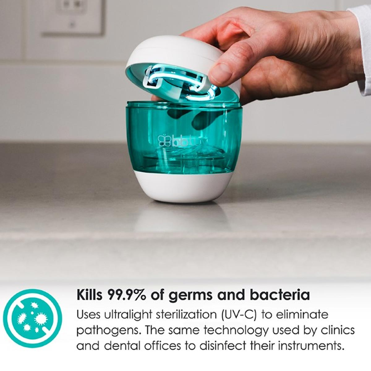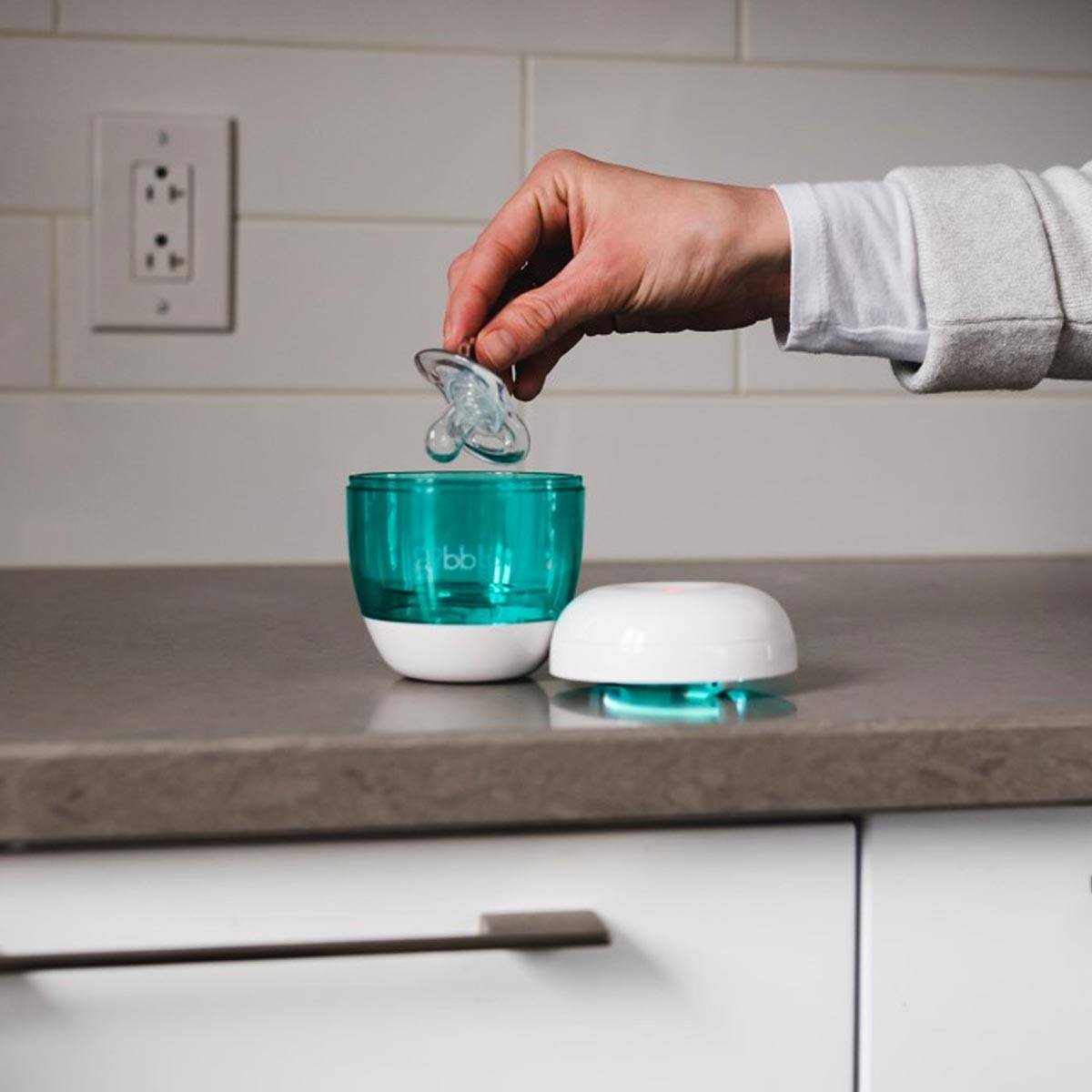 Φορητός αποστειρωτής πιπίλας σε ροζ-γαλάζιο χρώμα από την εταιρία Bbluv. Είναι εύκολο στην χρήση και ιδανικό για να το έχετε μαζί σας παντού καθώς χωράει σε κάθε τσάντα. Ο αποστειρωτής Uvi χρησιμοποιεί μια αποτελεσματική και ασφαλή τεχνολογία που εξουδετερώνει τα βακτήρια από τις πιπίλες, τα μπουκάλια, τις θηλές των μπουκαλιών και τα καπάκια με στόμιο χωρίς να χρησιμοποιεί χημικές ουσίες. Έχει ανθεκτική λάμπα UV και αποστειρώνει αρκετά γρήγορα. Το μικρό σχήμα του και το ελαφρύ βάρος του, τον καθιστά ιδανικό για να τον μεταφέρετε στην τσάντα σας κατά το ταξίδι, την βόλτα ή τις εξόδους σας με το μωρό σας.