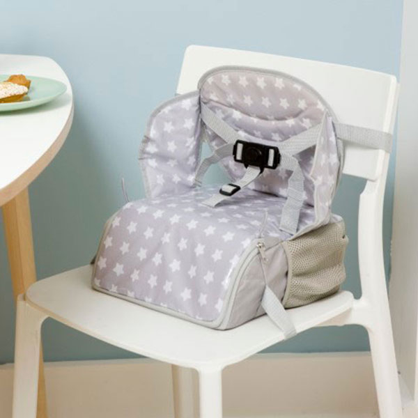 Φορητό καθισματάκι φαγητού από την εταιρεία Baby To Love σε γκρι χρώμα με λευκά αστέρια στο σχέδιο. Είναι ελαφρύ και ιδανικό για να το έχετε μαζί σας παντού, καθώς διπλώνει με πρακτικό τρόπο. Το παιδί θα στέκεται άνετα στο booster και με ασφάλεια, καθώς ασφαλίζεται με την ρυθμιζόμενη ζώνη του καθίσματος και το κάθισμα δένεται στα δύο μέρη της καρέκλας, στην βάση και στην πλάτη. Διαθέτει αποθηκευτικό χώρο για να έχετε πάντα μαζί σας τα αγαπημένα του παιχνίδια ή ότι άλλο χρειάζεστε. Σχεδιασμένο για να ταιριάζει στις περισσότερες καρέκλες κανονικού μεγέθους. Στερεώνεται στην καρέκλα ενηλίκων από το κάθισμα και την πλάτη, γρήγορα και με ασφάλεια. Ιδανικό καρεκλάκι booster για την επίτευξη της μέγιστης άνεσης κατά την διάρκεια του φαγητού είτε στο σπίτι είτε στο εστιατόριο. Κατάλληλο για παιδιά από 6 μηνών έως 15kg.