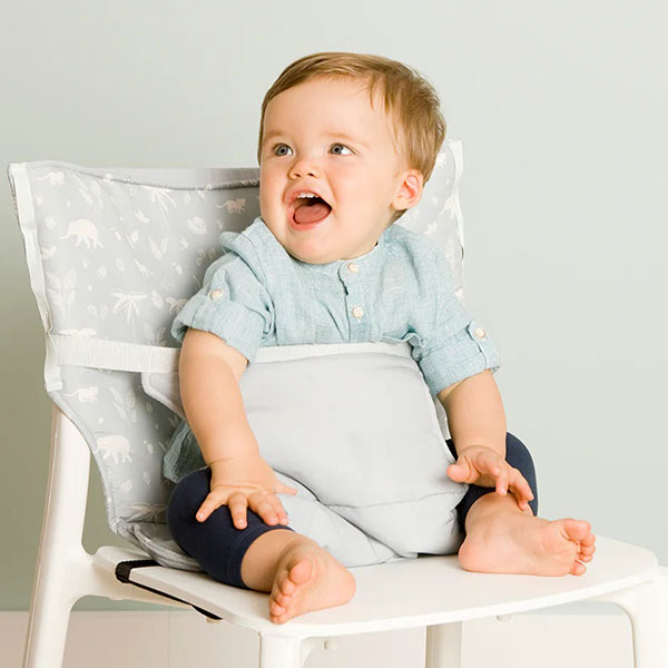Φορητό καθισματάκι φαγητού από την εταιρεία Baby To Love σε γκρι χρώμα με λευκά σχέδια. Είναι κατασκευασμένη η μονόχρωμη επιφάνεια από 95% και 5% βαμβάκι. Το ύφασμα με το σχέδιο είναι κατασκευασμένο από 67% polyester και 33% βαμβάκι. Εσωτερικά έχει πολυεστερική βάτα που το καθιστά ιδιαίτερα μαλακό και άνετο. Είναι ελαφρύ και ιδανικό για να το έχετε μαζί σας παντού, καθώς διπλώνει με πρακτικό τρόπο. Η τσάντα μεταφοράς που διαθέτει θα σας βολέψει στη μεταφορά. Τοποθετείται στην καρέκλα και ασφαλίζεται με την ρυθμιζόμενη ζώνη του καθίσματος. Το κάθισμα δένεται στα δύο μέρη της καρέκλας, στην βάση και στην πλάτη. Σχεδιασμένο για να ταιριάζει στις περισσότερες καρέκλες κανονικού μεγέθους. Στερεώνεται στην καρέκλα ενηλίκων από το κάθισμα και την πλάτη, γρήγορα και με ασφάλεια. Κατάλληλο για ηλικίες από 6 μηνών και άνω.