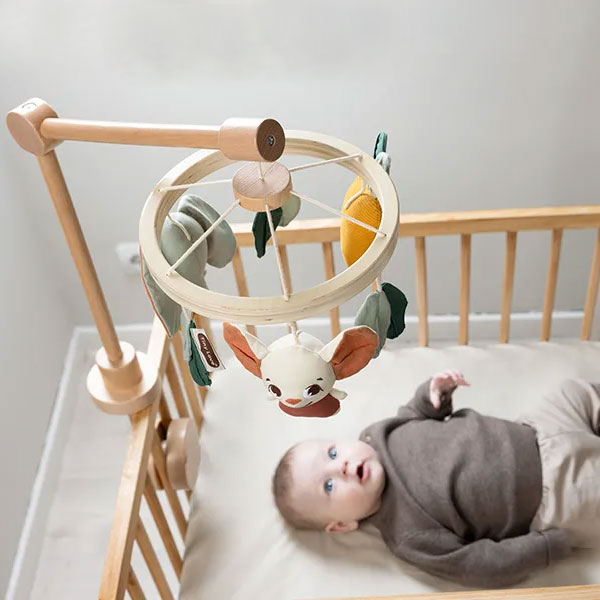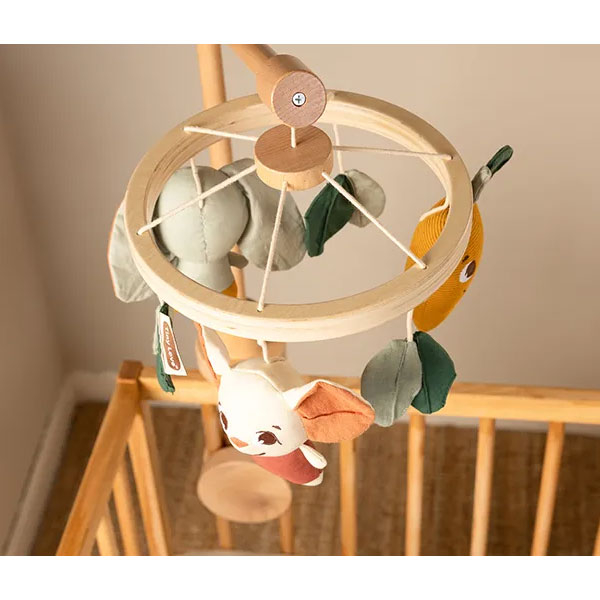 Φορητό μόμπιλε της εταιρείας Tiny Love σε μπεζ χρώμα με πολύχρωμες λεπτομέρειες. Είναι κατασκευασμένο από ξύλο. Η φυσική και χαλαρωτική κίνηση, προσφέρει την κατάλληλη ποσότητα αισθητηριακής διέγερσης. Έχει κλείδωμα που ασφαλίζει στην κούνια ή στο κρεβάτι. Οι κρεμαστές λούτρινες φιγούρες θα διεγείρουν τις αισθήσεις του μωρού. Εύκολη τοποθέτηση και συμβατό με τις περισσότερες κούνιες. Περιλαμβάνεται βραχίονας κούνιας. Κατάλληλο από την πρώτη μέρα γέννησης.
