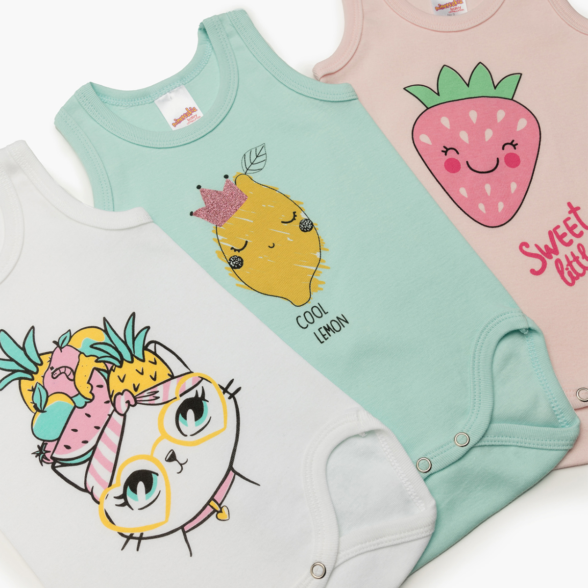 Βρεφικά φορμάκια σετ 3 τεμαχίων από τη συλλογή Minervakia της εταιρείας Minerva. Πρόκειται για αμάνικα ζιπουνάκια σε λευκό, ροζ και βεραμάν χρώμα με μοντέρνα σχέδια. Είναι κατασκευασμένα από 100% βαμβακερό ύφασμα, που προσδίδει ιδιαίτερη απαλότητα, αντοχή και σωστή εφαρμογή. Δεν διαθέτουν εσωτερικές πλαϊνές ραφές προς αποφυγή ερεθισμών του ευαίσθητου βρεφικού δέρματος. Είναι ιδιαίτερα ανθεκτικά και διατηρούν τη φόρμα τους. Διαθέτουν 3 clips (σούστες) στο κάτω μέρος για εύκολο κλείσιμο και άνοιγμα. Τα φορμάκια φέρουν υφασμάτινη φάσα περιμετρικά στα ποδαράκια για άνετη και σταθερή εφαρμογή. Τα χρώματα και τα σχέδια έχουν δημιουργηθεί με την μέθοδο της νηματοβαφής (μέσα στην ύφανση), με αποτέλεσμα να παραμένουν αναλλοίωτα στην χρήση και τις πλύσεις. Σε όλα τα στάδια παραγωγής έχουν χρησιμοποιηθεί υποαλλεργικά υλικά χωρίς επιβλαβείς ουσίες προς την υγεία. Διαθέτουν τα διεθνή πιστοποιητικά ποιότητας και ασφάλειας ISO 9001:2000 , ISO 9002, Oeko-Tex Standard 100, Eco Textile Label. Αποτελούν προϊόντα ελληνικής ραφής με την εγγύηση ποιότητας και αξιοπιστίας της εταιρείας Minerva. Μεγεθολόγιο ανάλογα με ηλικία, ύψος και βάρος βρέφους: 62cm (1-3 μηνών, 5.5kg), 70cm (3-6 μηνών, 7.5kg), 78cm (6-12 μηνών, 10kg), 86cm (12-18 μηνών, 11.5kg), 92cm (18-24 μηνών, 13kg).