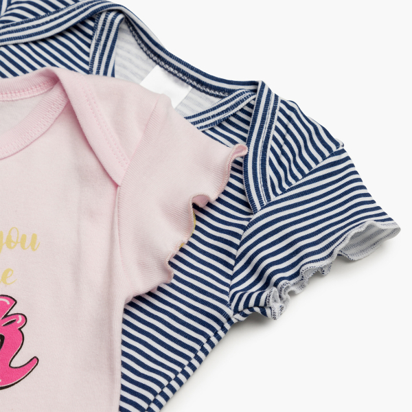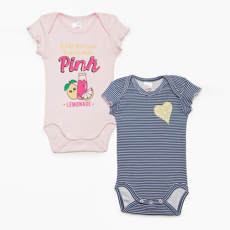 Βρεφικά φορμάκια (κωδ.: 30786) σετ 2 τμχ από τη συλλογή Minervakia της εταιρείας Minerva. Πρόκειται για κοντομάνικα ζιπουνάκια σε ροζ, μπλε και λευκό χρώμα. Φέρουν 2 διαφορετικά σχέδια με χαριτωμένη παιδική παράσταση και ριγέ μοτίβο. Είναι κατασκευασμένα από 100% βαμβακερό ύφασμα πεννιέ, που προσδίδει ιδιαίτερη απαλότητα, αντοχή και σωστή εφαρμογή. Δεν διαθέτουν εσωτερικές πλαϊνές ραφές προς αποφυγή ερεθισμών του ευαίσθητου βρεφικού δέρματος. Είναι ιδιαίτερα ανθεκτικά και διατηρούν τη φόρμα τους. Διαθέτουν 3 clips (σούστες) στο κάτω μέρος για εύκολο κλείσιμο και άνοιγμα. Τα φορμάκια φέρουν υφασμάτινη φάσα περιμετρικά στα ποδαράκια για άνετη και σταθερή εφαρμογή. Τα χρώματα και τα σχέδια έχουν δημιουργηθεί με την μέθοδο της νηματοβαφής (μέσα στην ύφανση), με αποτέλεσμα να παραμένουν αναλλοίωτα στην χρήση και τις πλύσεις. Σε όλα τα στάδια παραγωγής έχουν χρησιμοποιηθεί υποαλλεργικά υλικά χωρίς επιβλαβείς ουσίες προς την υγεία. Διαθέτουν τα διεθνή πιστοποιητικά ποιότητας και ασφάλειας ISO 9001:2000 , ISO 9002, Oeko-Tex Standard 100, Eco Textile Label. Αποτελούν προϊόντα ελληνικής ραφής με την εγγύηση ποιότητας και αξιοπιστίας της εταιρείας Minerva. Μεγεθολόγιο ανάλογα με ηλικία, ύψος και βάρος βρέφους: 62cm (1-3 μηνών, 5.5kg), 70cm (3-6 μηνών, 7.5kg), 78cm (6-12 μηνών, 10kg), 86cm (12-18 μηνών, 11.5kg), 92cm (18-24 μηνών, 13kg).
