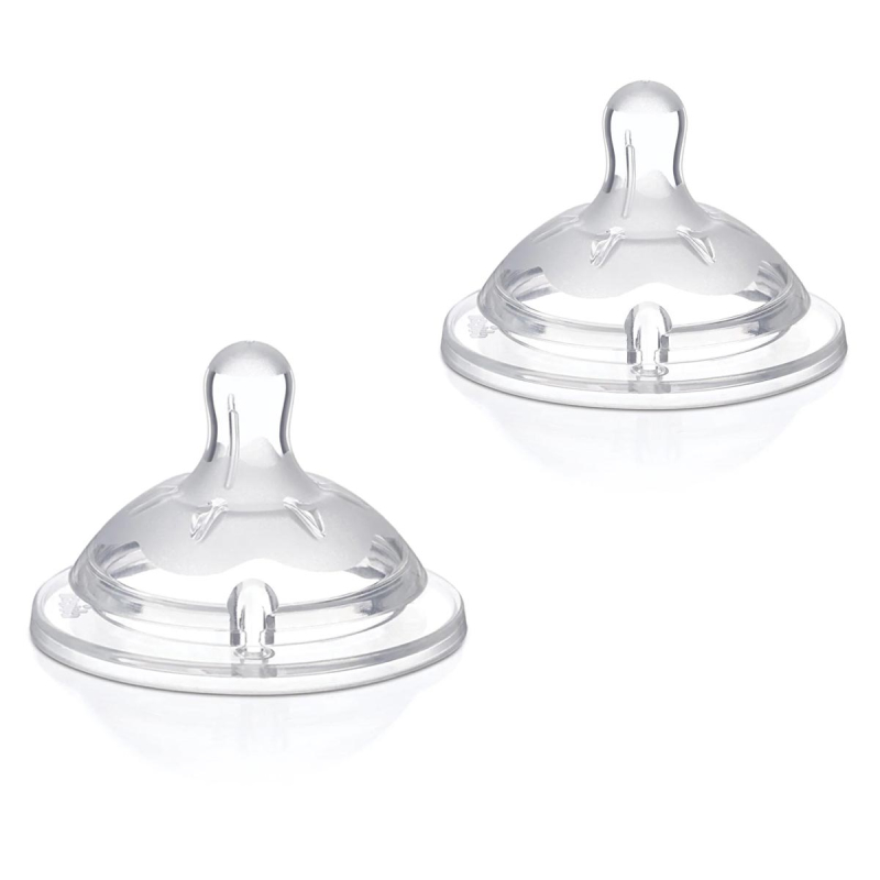 Θηλές σιλικόνης ρυθμιζόμενης ροής από την εταιρεία Chicco. Είναι συμβατές με τα μπιμπερό της σειράς Natural Feeling. Είναι κατασκευασμένες από μαλακή σιλικόνη και έχουν αντικολική δράση, η οποία αποτρέπει τον αέρα και εξασφαλίζουν μέγιστη προστασία κατά των κολικών και της αναρρόφησης. Επιτρέπουν την φυσική ροή και το πιπίλισμα καθώς μιμείται το στήθος, βοηθούν στην σωστή στάση των μωρών κατά την διάρκεια του ταΐσματος, ενώ η ρυθμιζόμενη ροή είναι ιδανική για τα πρώτα γεύματα. Ενδείκνυται για εναλλαγή μεταξύ φυσικού θηλασμού και διατροφής με μπιμπερό. Κατάλληλη για ηλικίες 2+ μηνών.
