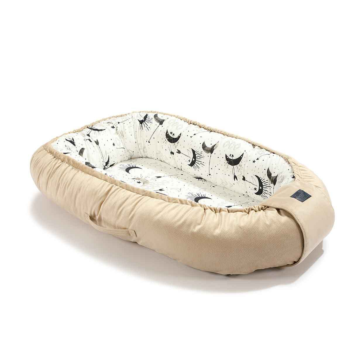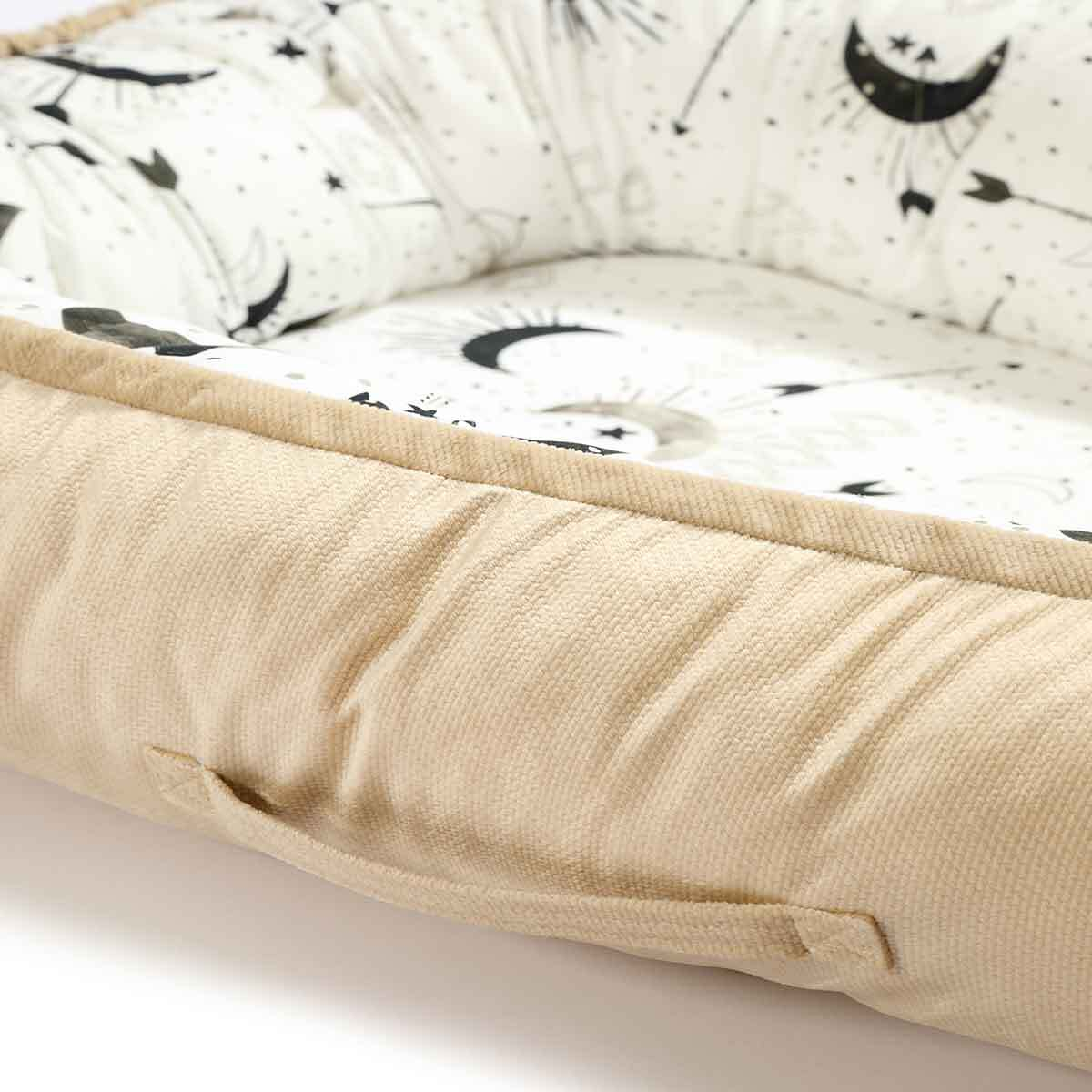 Φωλιά ύπνου Kokon της εταιρείας La Millou. Βοηθάει το μωρό σας να χαλαρώσει καθώς το αγκαλιάζει και το κάνει να νιώθει ασφαλές και προστατευμένο. Προστατεύει από τα χτυπήματα, τις απότομες κινήσεις αλλά και όταν γυρνάει πλευρό. Μπορείτε να την έχετε πάντα και παντού μαζί σας για να ξεκουραστεί το μωρό σας νιώθοντας ασφάλεια. Είναι κατάλληλη από την πρώτη ημέρα της γέννησης και για ολόκληρο τον πρώτο χρόνο. Διαθέτει κορδόνια, καλυμμένα από βελουτέ ύφασμα που δεν μπλέκονται στα πόδια του μωρού και προσαρμόζουν το μέγεθος της φωλιάς. Τοποθετούνται εύκολα μέσα στην ειδική περιμετρική θήκη για να μην εξέχουν προσφέροντας επιπλέον ασφάλεια. Έχει βελουτέ χερούλια για να την μεταφέρετε εύκολα (δεν μπορεί να χρησιμοποιηθεί για να μεταφέρετε το μωρό) .Το εσωτερικό της ύφασμα είναι από 100% βαμβάκι σε εκρού χρώμα, με μοντέρνο σχέδιο και γκρι λεπτομέρειες. Το εξωτερικό της ύφασμα είναι elegant-Velvet σε μπεζ απόχρωση. Το στρώμα είναι φτιαγμένο από αντιαλλεργικό αφρό πολυαιρεθάνης, με κενά που επιτρέπουν στο αέρα να περνάει. Το πολύ μικρό λευκό φερμουάρ της, σας επιτρέπει να την ανοίξετε και να αφαιρέσετε το στρώμα ώστε να τα πλύνετε. Περιλαμβάνεται η τσάντα μεταφοράς. Τα υφάσματα και η εσωτερική γέμιση έχουν πιστοποίηση Oeko – Tex Standard 100. Συνιστάται η επίβλεψη του γονέα τουλάχιστον μέχρι την ηλικία των 12 μηνών. Όλα τα προϊόντα της εταιρείας La Millou είναι χειροποίητα.
