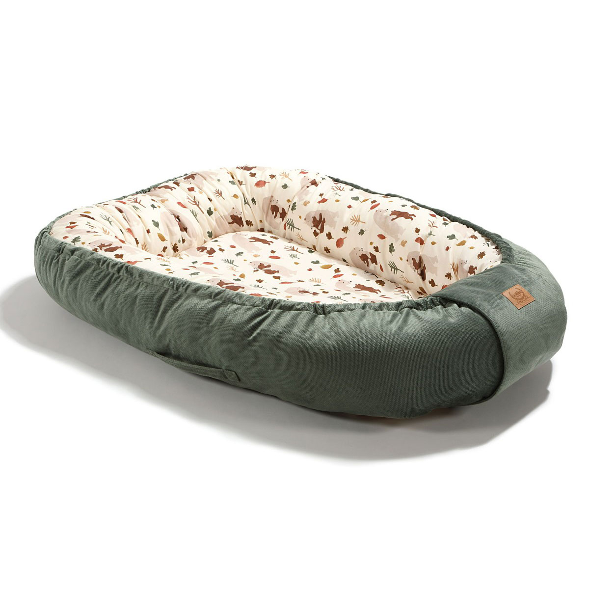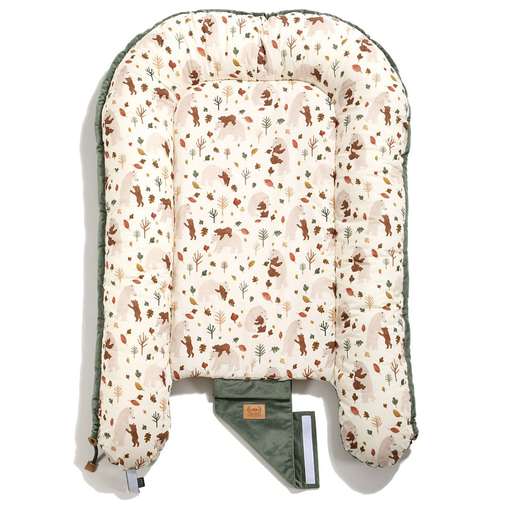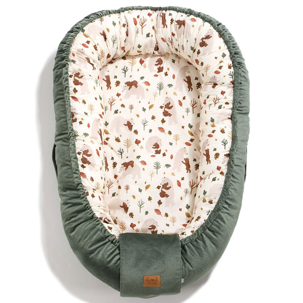 Φωλιά ύπνου Kokon της εταιρείας La Millou. Βοηθάει το μωρό σας να χαλαρώσει καθώς το αγκαλιάζει και το κάνει να νιώθει ασφαλές και προστατευμένο. Προστατεύει από τα χτυπήματα, τις απότομες κινήσεις αλλά και όταν γυρνάει πλευρό. Μπορείτε να την έχετε πάντα και παντού μαζί σας για να ξεκουραστεί το μωρό σας νιώθοντας ασφάλεια. Είναι κατάλληλη από την πρώτη ημέρα της γέννησης και για ολόκληρο τον πρώτο χρόνο. Διαθέτει κορδόνια, καλυμμένα από βελουτέ ύφασμα που δεν μπλέκονται στα πόδια του μωρού και προσαρμόζουν το μέγεθος της φωλιάς. Τοποθετούνται εύκολα μέσα στην ειδική περιμετρική θήκη για να μην εξέχουν προσφέροντας επιπλέον ασφάλεια. Έχει βελουτέ χερούλια για να την μεταφέρετε εύκολα (δεν μπορεί να χρησιμοποιηθεί για να μεταφέρετε το μωρό).Το εσωτερικό της ύφασμα είναι από 100% βαμβάκι σε εκρού χρώμα, με σχέδιο ζωάκια και χακί-μουσταρδί λεπτομέρειες. Το εξωτερικό της ύφασμα είναι βελουτέ σε χακί χρώμα. Το εσωτερικό στρώμα είναι φτιαγμένο από χνούδι σιλικόνης. Πλένεται στο πλυντήριο χωρίς να χρειάζεται να αφαιρεθεί το στρώμα, καθώς το εσωτερικό γέμισμα είναι ραμμένο με το εξωτερικό βαμβακερό ύφασμα. Περιλαμβάνεται η τσάντα μεταφοράς. Τα υφάσματα και η εσωτερική γέμιση έχουν πιστοποίηση Oeko – Tex Standard 100. Συνιστάται η επίβλεψη του γονέα τουλάχιστον μέχρι την ηλικία των 12 μηνών. Όλα τα προϊόντα της εταιρείας La Millou είναι χειροποίητα.