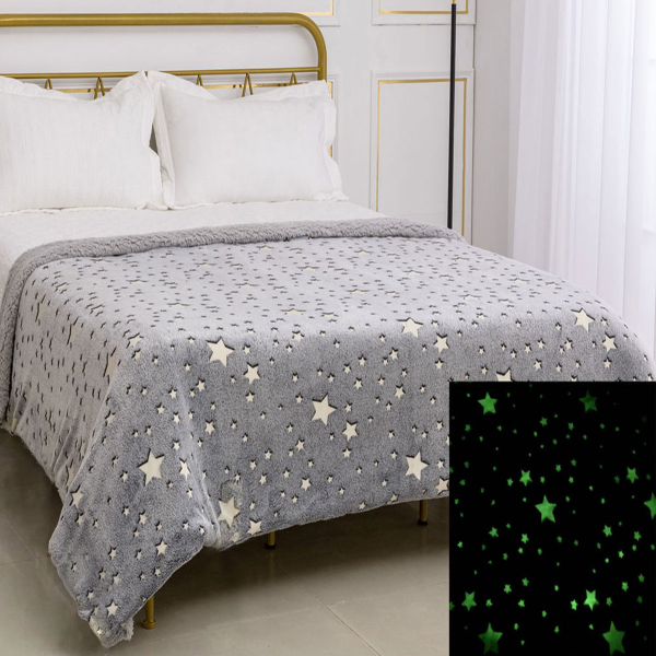 | Silk FashionΦωσφοριζέ Κουβέρτα Fleece Μονή Με Γουνάκι (170x220) Silk Fashion Star Γκρι