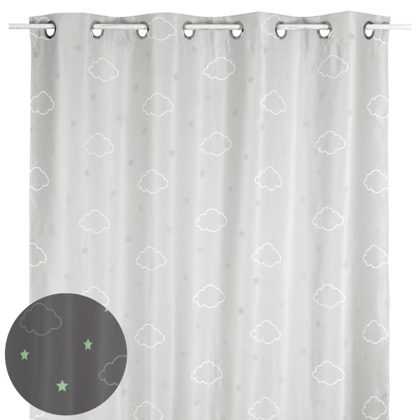 Παιδική κουρτίνα σε γκρι χρώμα με σχέδιο αστεριών που φωσφορίζουν στο σκοτάδι. Το ύφασμά της είναι 100% polyester πλήρους συσκότισης, για να μπορεί το παιδί σας να κοιμηθεί ήρεμα. Διαθέτει ενσωματωμένα τρουκς διαμέτρου 4cm για εύκολη τοποθέτηση. Κρεμάστε την και διακοσμήστε με τον πιο εύκολο τρόπο το παιδικό ή βρεφικό δωμάτιο.