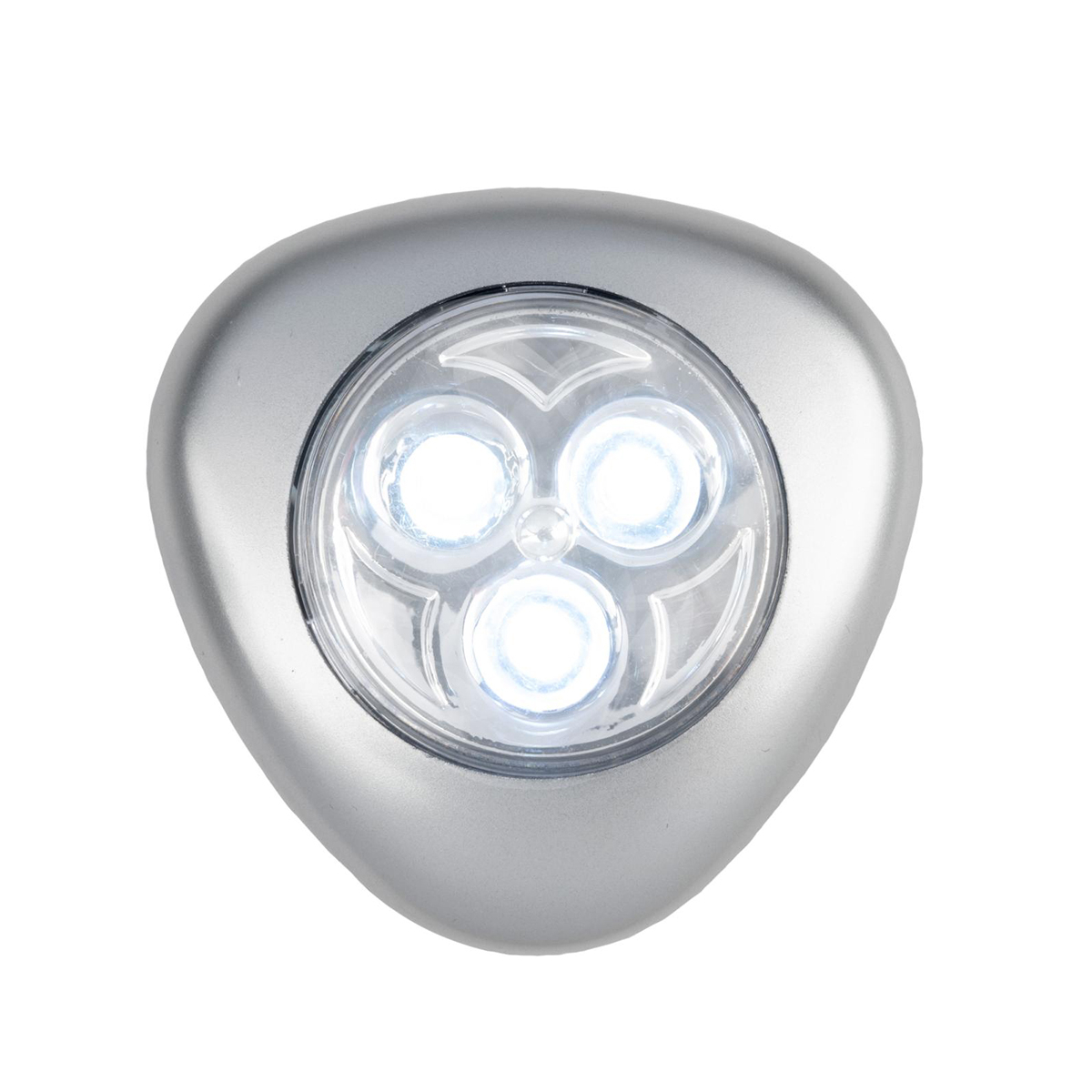 Φωτιστικά Led σε σετ 3 τεμαχίων, της εταιρείας Grundig. Είναι κατασκευασμένα από πλαστικό υλικό σε ασημί χρώμα. Έχουν μηχανισμό push to open για να ανάβουν εύκολα και γρήγορα. Διαθέτουν κουμπί On/Off. Έχουν από 1 ενσωματωμένη πλακέτα με 3 λαμπάκια Led. Με εύκολη εγκατάσταση. Το κάθε φωτιστικό λειτουργεί με 1 μπαταρία ΑΑΑ, η οποία δεν περιλαμβάνεται. Ιδανικά φωτιστικά για να τα τοποθετήσετε σε κάποιο ντουλάπι, ντουλάπα ή και δίπλα από το κρεβάτι σας.