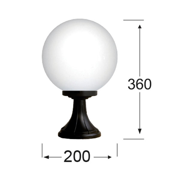 Επιδαπέδιο φωτιστικό εξωτερικού χώρο. Η βάση είναι κατασκευασμένη από πλαστικό υλικό σε μαύρο χρώμα. Διαθέτει ακρυλική πλαστική μπάλα σε λευκό χρώμα. Η μπάλα έχει διάμετρο 20εκ. Διαθέτει προστασία από υγρασία και σκόνη με βαθμό στεγανότητας IP23 και είναι κατάλληλη και για εξωτερικούς χώρους. Τύπος ντουί: 1xE27 και θέση για 1 λαμπτήρα **ΑΠΟΚΛΕΙΣΤΙΚΑ LED έως 10W** (δεν συμπεριλαμβάνεται). Δεν περιλαμβάνονται οι βίδες στερέωσης.