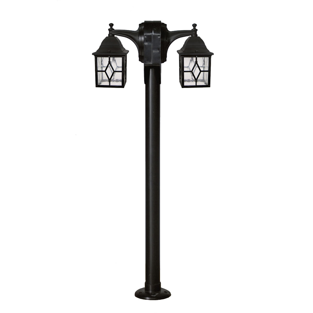 Φωτιστικό φανάρι με κολώνα χώρου της εταιρείας Heronia με vintage σχεδιασμό. Είναι κατασκευασμένο από πλαστικό υλικό σε μαύρο χρώμα. Διαθέτει προστασία από υγρασία και σκόνη με βαθμό στεγανότητας IP44 και είναι κατάλληλο και για εξωτερικούς χώρους. Τύπος ντουί: 2xE27 και θέση για 2 λαμπτήρες **ΑΠΟΚΛΕΙΣΤΙΚΑ LED έως 10W ΈΚΑΣΤΟΣ** (δεν συμπεριλαμβάνεται). Δεν περιλαμβάνονται οι βίδες στερέωσης.