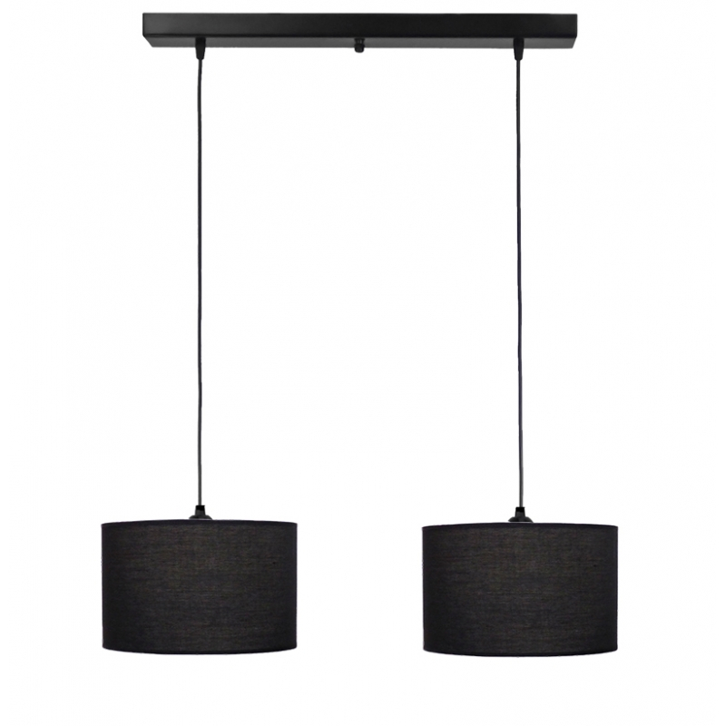 Φωτιστικό οροφής με ράγα της εταιρείας Heronia σε μίνιμαλ στυλ. Τα καπέλα είναι κατασκευασμένα από ύφασμα σε μαύρο χρώμα. Υπάρχει δυνατότητα αυξομείωσης του συνολικού ύψους έως 95εκ. και ρύθμισης του σχήματος του φωτιστικού στα επιθυμητά μέσω των 2 καλωδίων ανάρτησης. Διαθέτει μεταλλική βάση τοποθέτησης και καλώδια σε μαύρο χρώμα. Τύπος ντουί: 2xE27 και θέσεις για 2 λαμπτήρες **ΑΠΟΚΛΕΙΣΤΙΚΑ LED έως 10W έκαστος** (δεν συμπεριλαμβάνονται). Δεν περιλαμβάνονται οι βίδες στερέωσης.