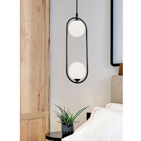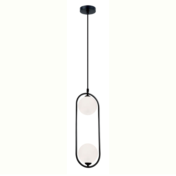 Φωτιστικό οροφής με μοντέρνο σχεδιασμό, από την εταιρεία Viokef. Είναι κατασκευασμένο από μαύρο μεταλλικό υλικό και διαθέτει 2 καπέλα σε σχήμα μπάλας από γυαλί σε λευκό χρώμα. Υπάρχει δυνατότητα αυξομείωσης του συνολικού ύψους έως 150εκ. μέσω του καλωδίου ανάρτησης. Διαθέτει μαύρη βάση τοποθέτησης και καλώδιο σε μαύρο χρώμα. Είναι κατάλληλο για εσωτερικό χώρο με IP20. Τύπος ντουί: 2xG9 και θέσεις για 2 λαμπτήρες έως 25W (δεν συμπεριλαμβάνονται). Συνδυάστε το με τα υπόλοιπα φωτιστικά της ίδιας συλλογής για ένα ολοκληρωμένο αποτέλεσμα στο χώρο σας.